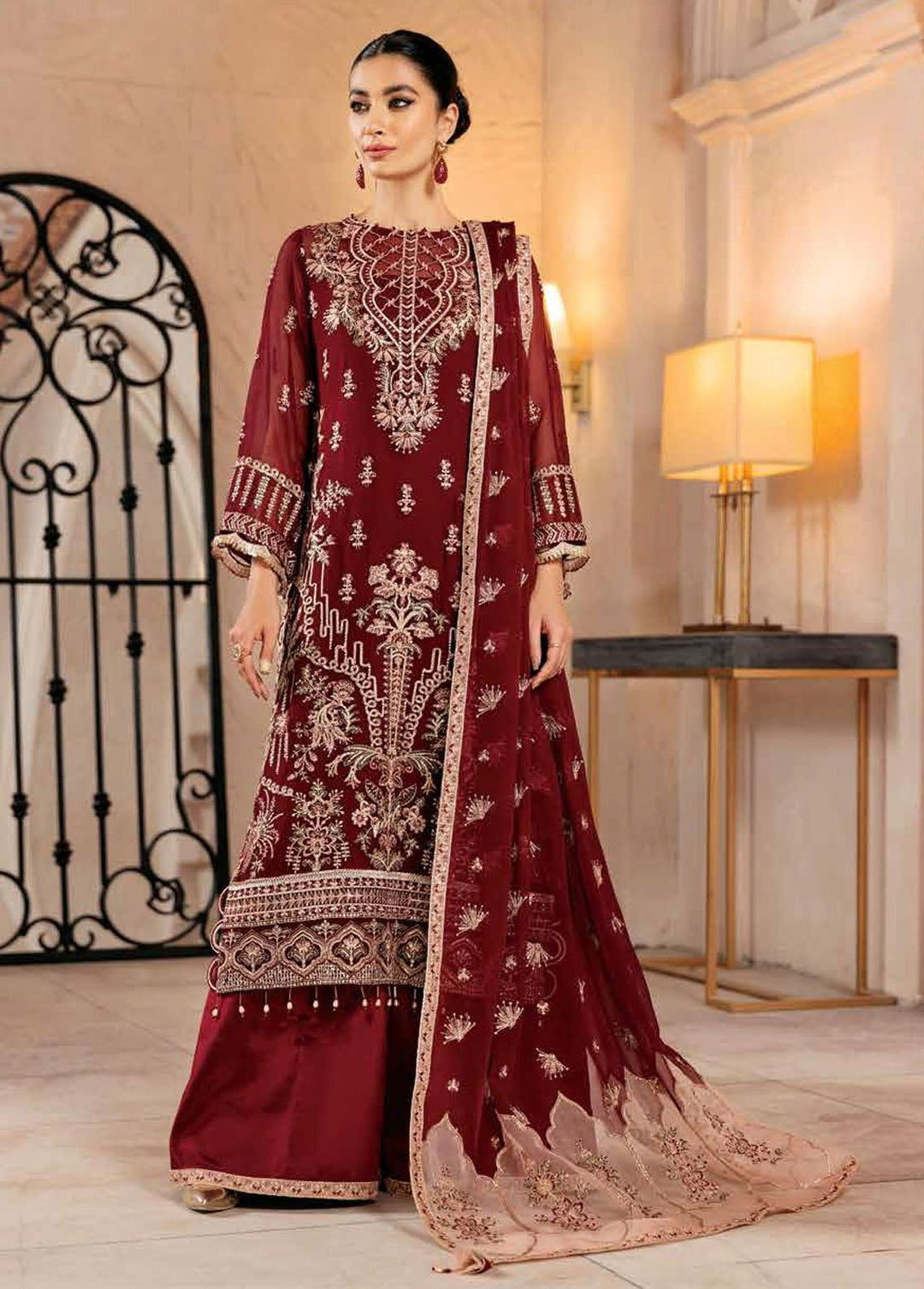 Kalidaar By Roheenaz Embroidered Chiffon Suits Unstitched 3 Piece RO22K RCH-22-08 - Luxury Collection