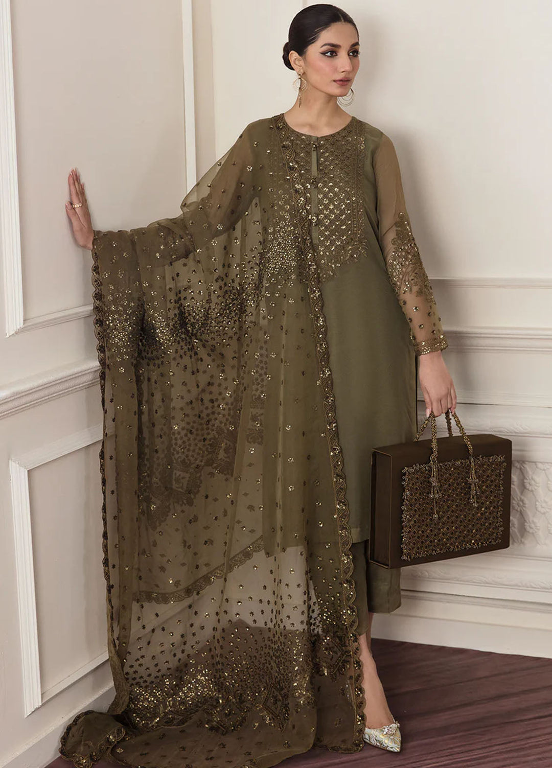 Baroque Embroidered Chiffon Suits Unstitched 3 Piece BQ25UF Pecan - Formals Collection