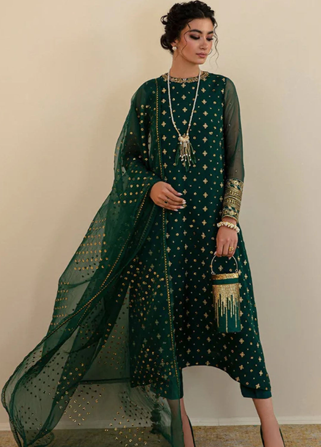 Baroque Embroidered Net Suits Unstitched 3 Piece BQ25UF Frost Green - Formals Collection