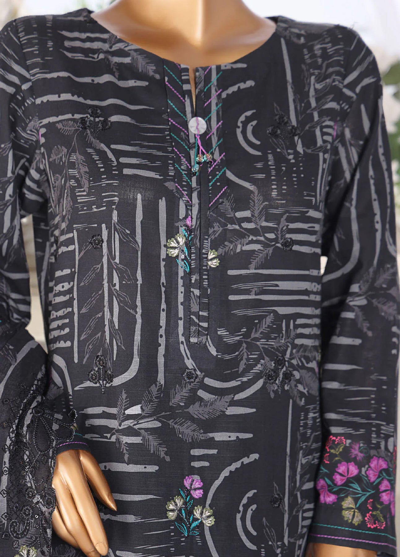 Experience the perfect blend of comfort and style with our pure khaddar fabric featuring a digital printed khaddar embroidered cutwork dupatta adding a touch of vibrant elegance to your wardrobe.