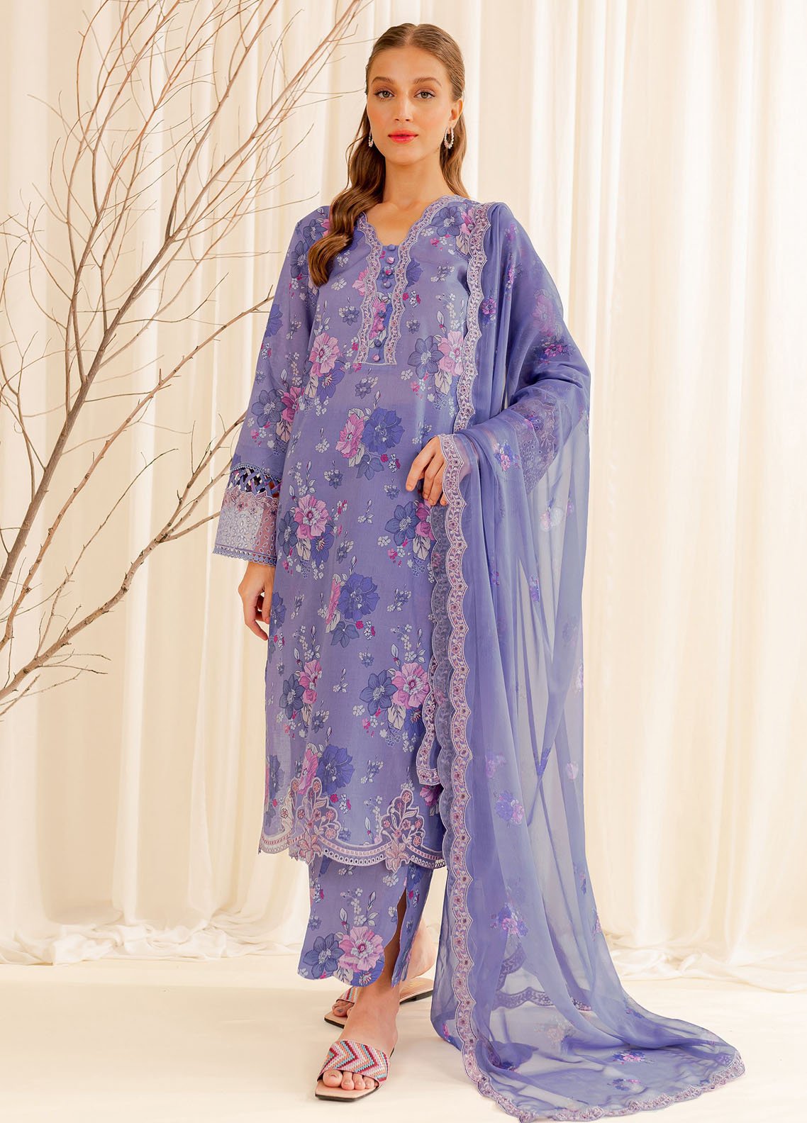 Farasha Embroidered Lawn Suits Unstitched 3 Piece FSH24PE D-02 Lavender Bliss - Summer Collection
