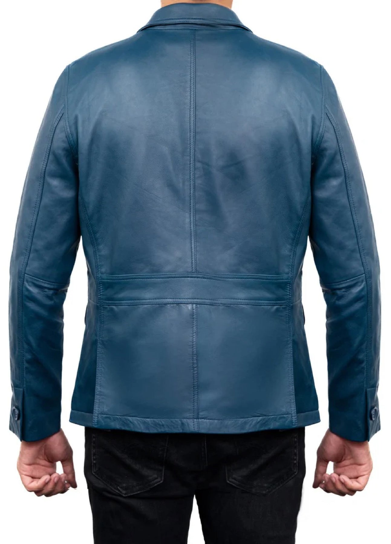 Jild Leathers 2-Button Men Lambskin Leather Blazer-Blue - Blazers And Coats Collection