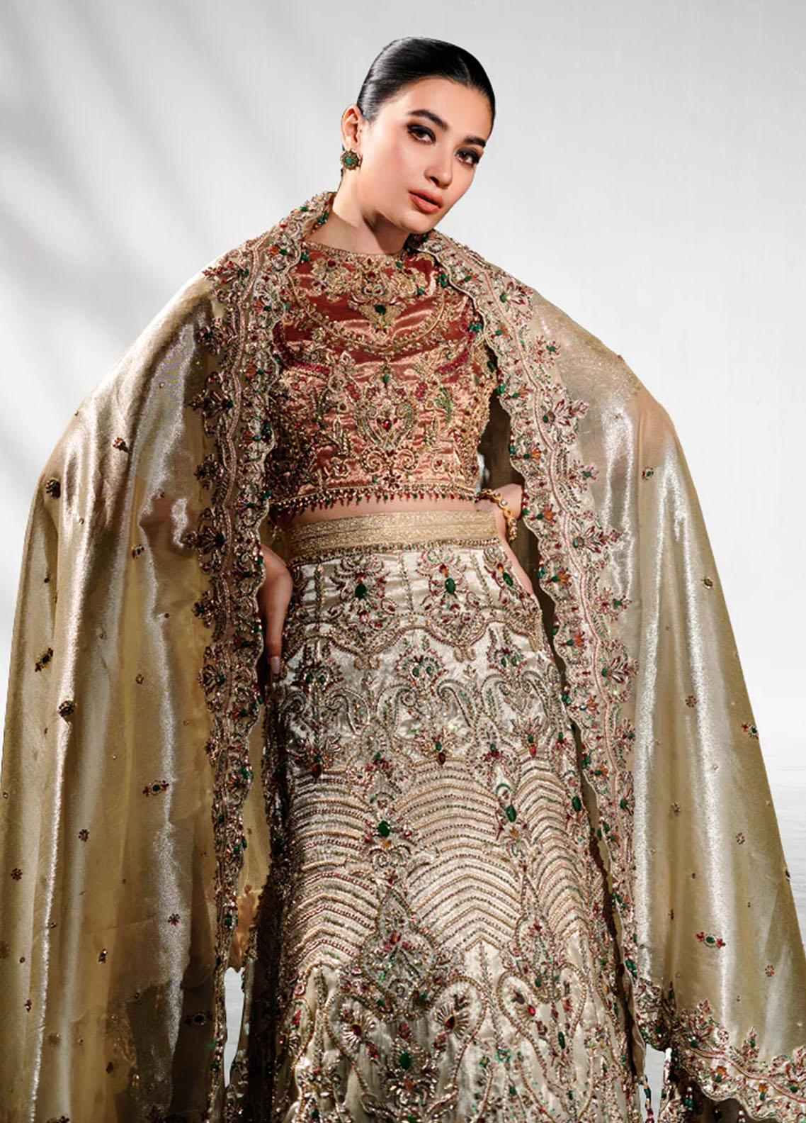 Make a blazing statement with this bridal. A never before seen look of stunning lehenga meticulously hand crafted with crystals stones dabka sequins resham threads and dabka. This dream worthy lehenga choli paired with tissue dupatta which is exquisitely embellished with heavy border and marvelous spray and tasseling makes this an absolute must have. One of the most beautiful outfits from our collection Ameera is sure shot winners for years to come.Includes Choli Lehenga and Dupatta.Fabric Tissue