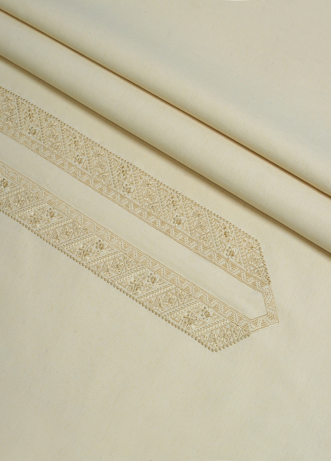 Men Unstitch Neckline Embroidered Cotton Karandi Fabric-Cream-GTS-KB-020