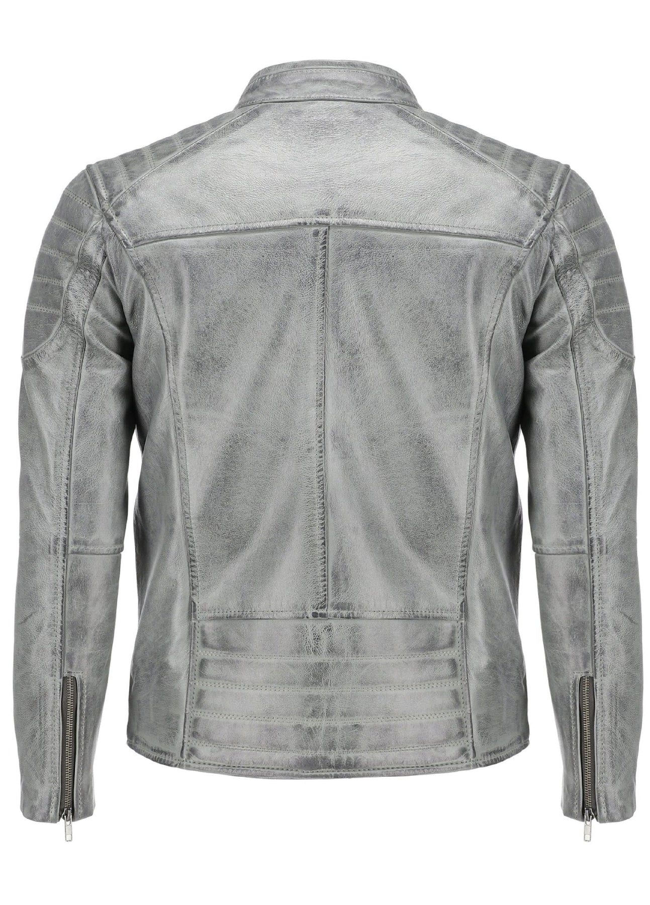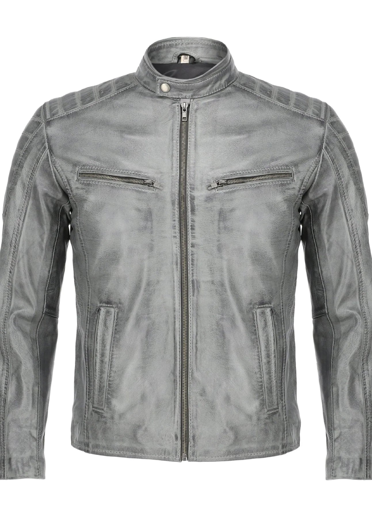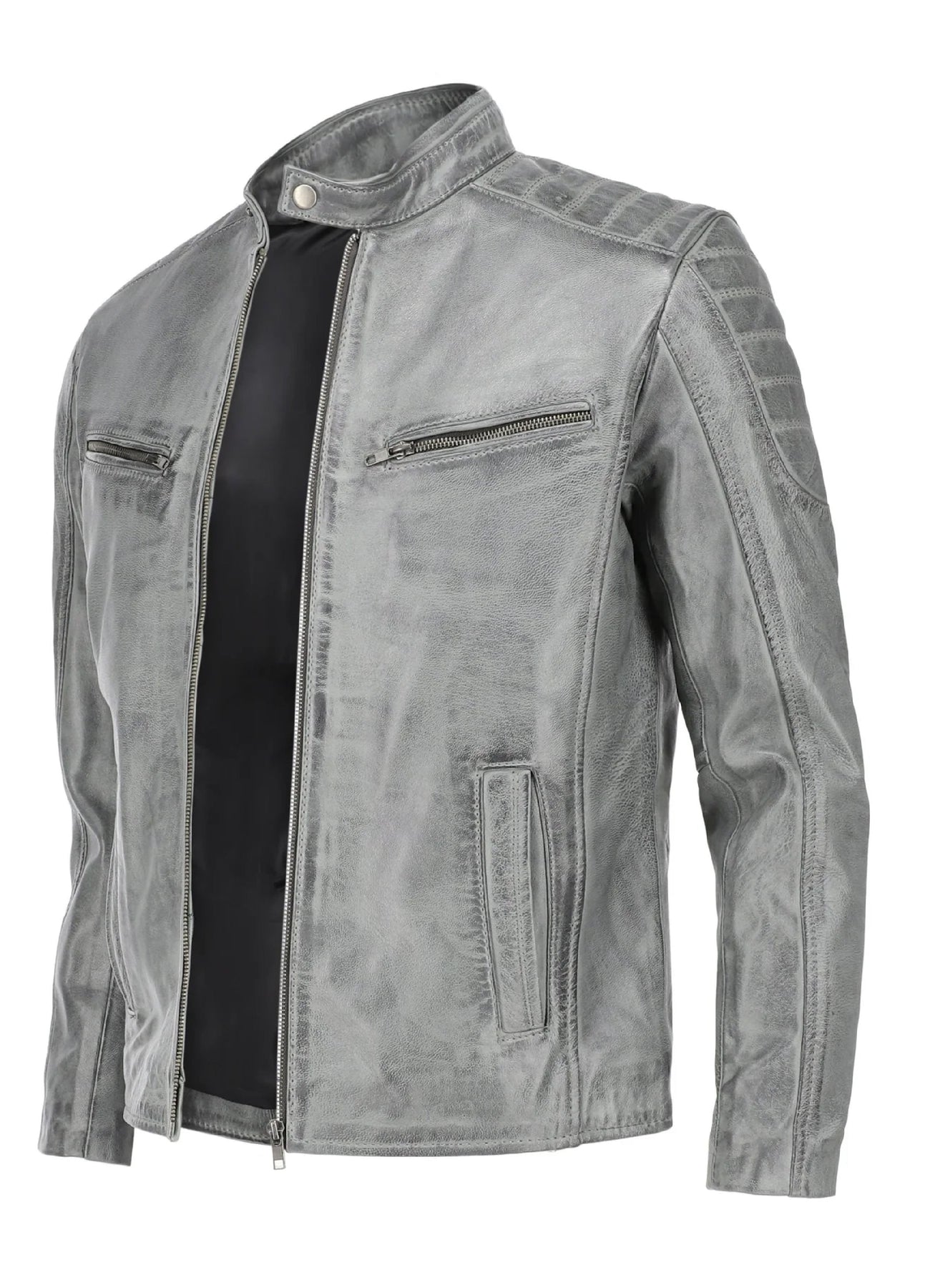 Mens Grey Wax Lambskin Biker Style Leather Jacket