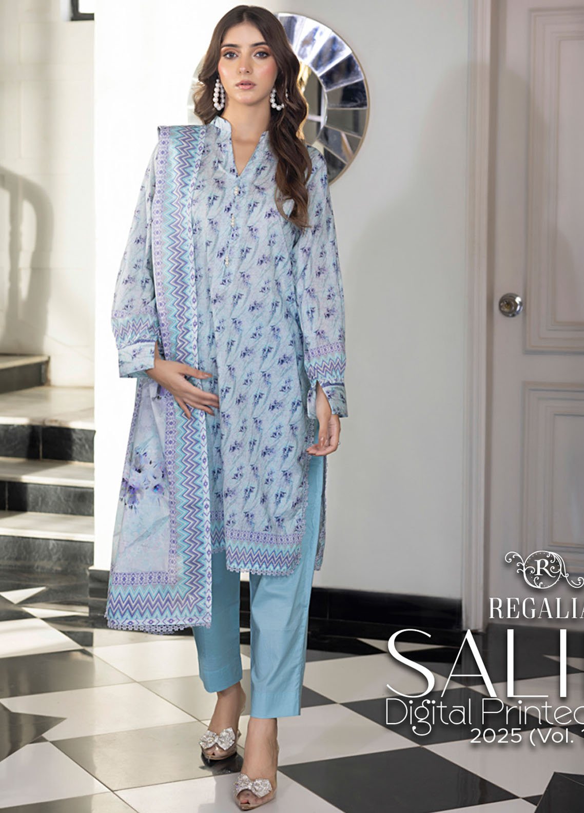 3 Piece Digital Printed Unstitched Suits from Salina By Regalia Digital Printed Lawn Collection 2025 Volume 19