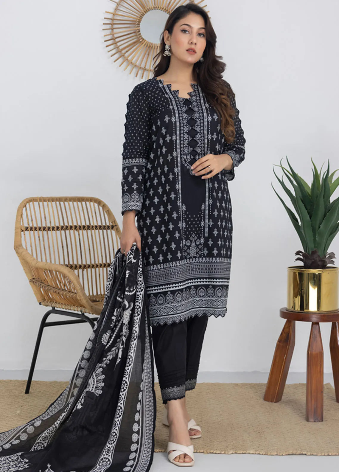 3 Piece Printed Unstitched Suits from Salina by Regalia Textiles Black And White Collection 2024 Chapter-3