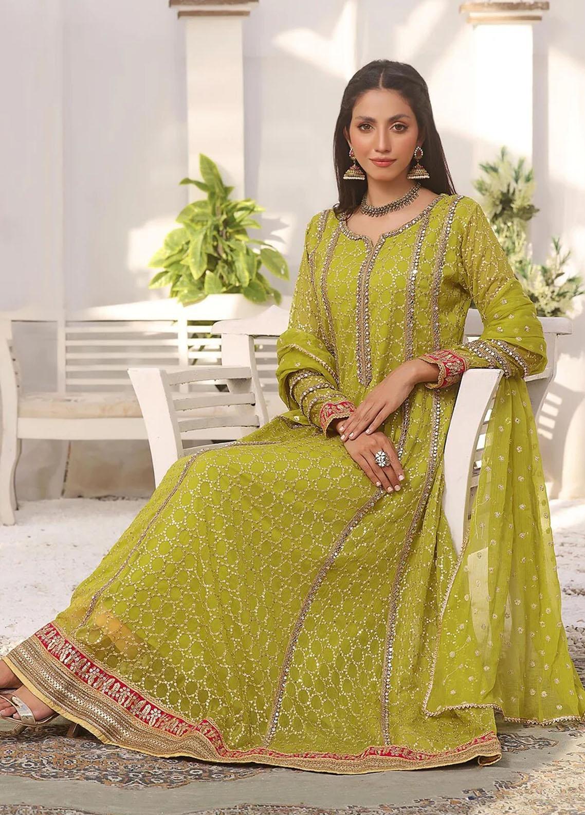 A classic Maxi made from pure sequined chiffon with attached lining, featuring Mirror & Indian Lace at the Front and cuffs. Comes with an attached pleated dupatta draped from the bottom. A new take on our occasion Wear collection. Paired with cigarette Malai Crepe pants.