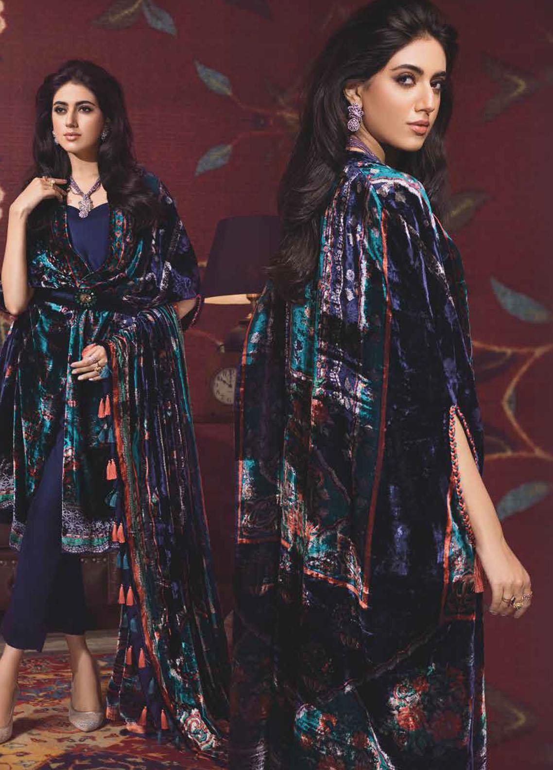 Gul Ahmed Printed Velvet Suits Unstitched 3 Piece GA21JL BVL-12004 A - Winter Collection