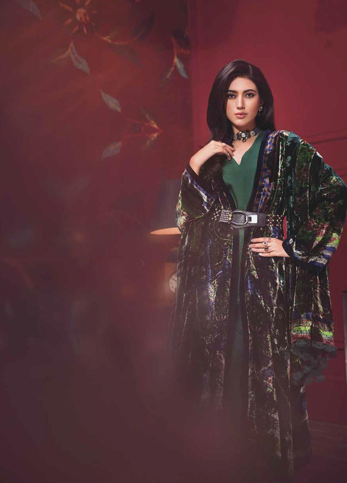 Gul Ahmed Printed Velvet Suits Unstitched 3 Piece GA21JL BVL-12004 B - Winter Collection
