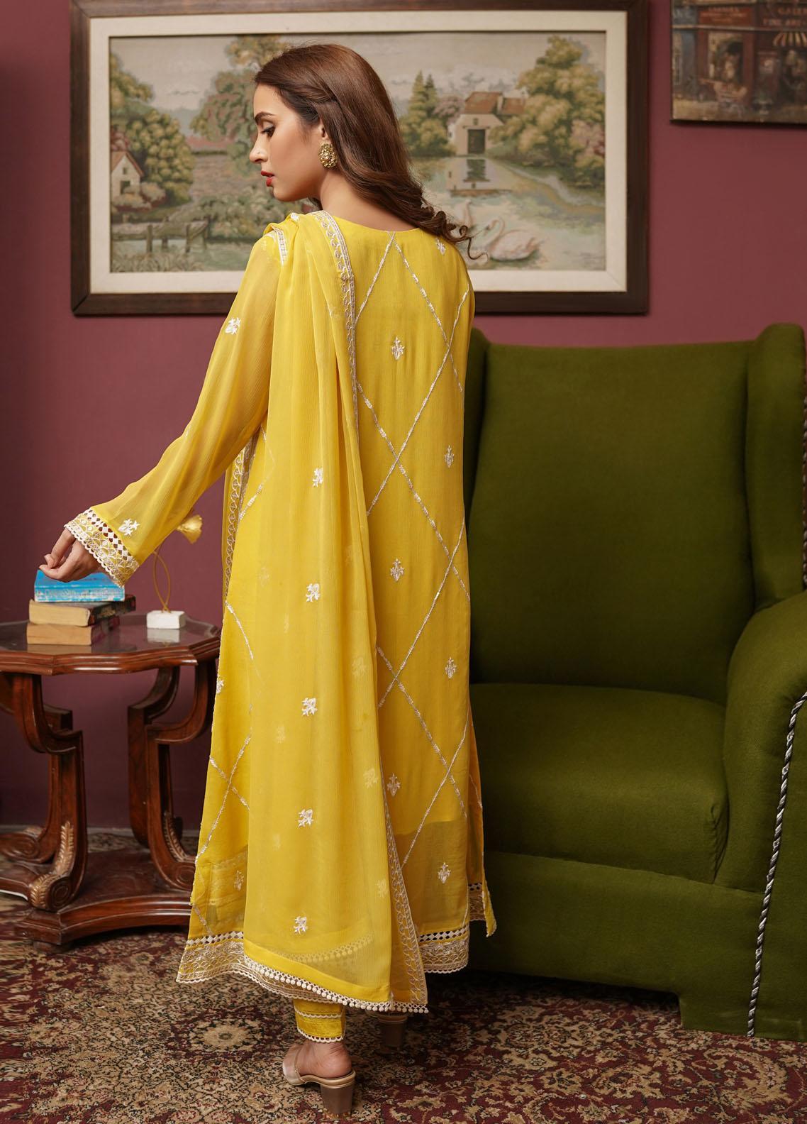 Shamooz Embroidered Chiffon Suits Unstitched 2 Piece SHM22UN Yellow SU-014 - Luxury Festive Collection