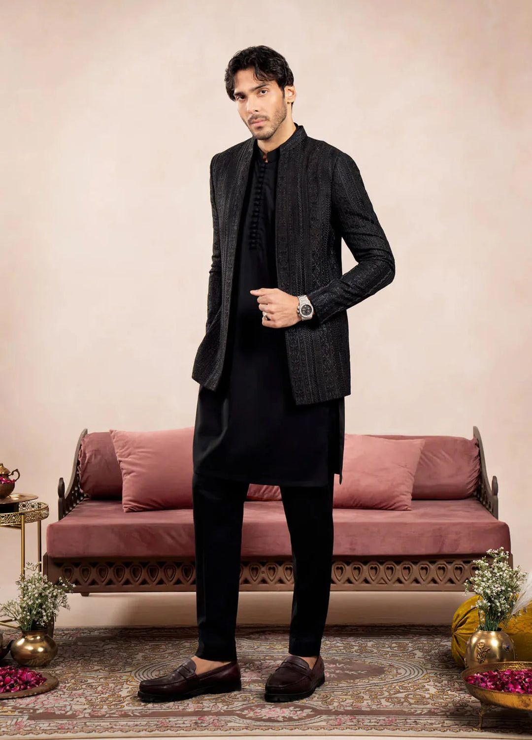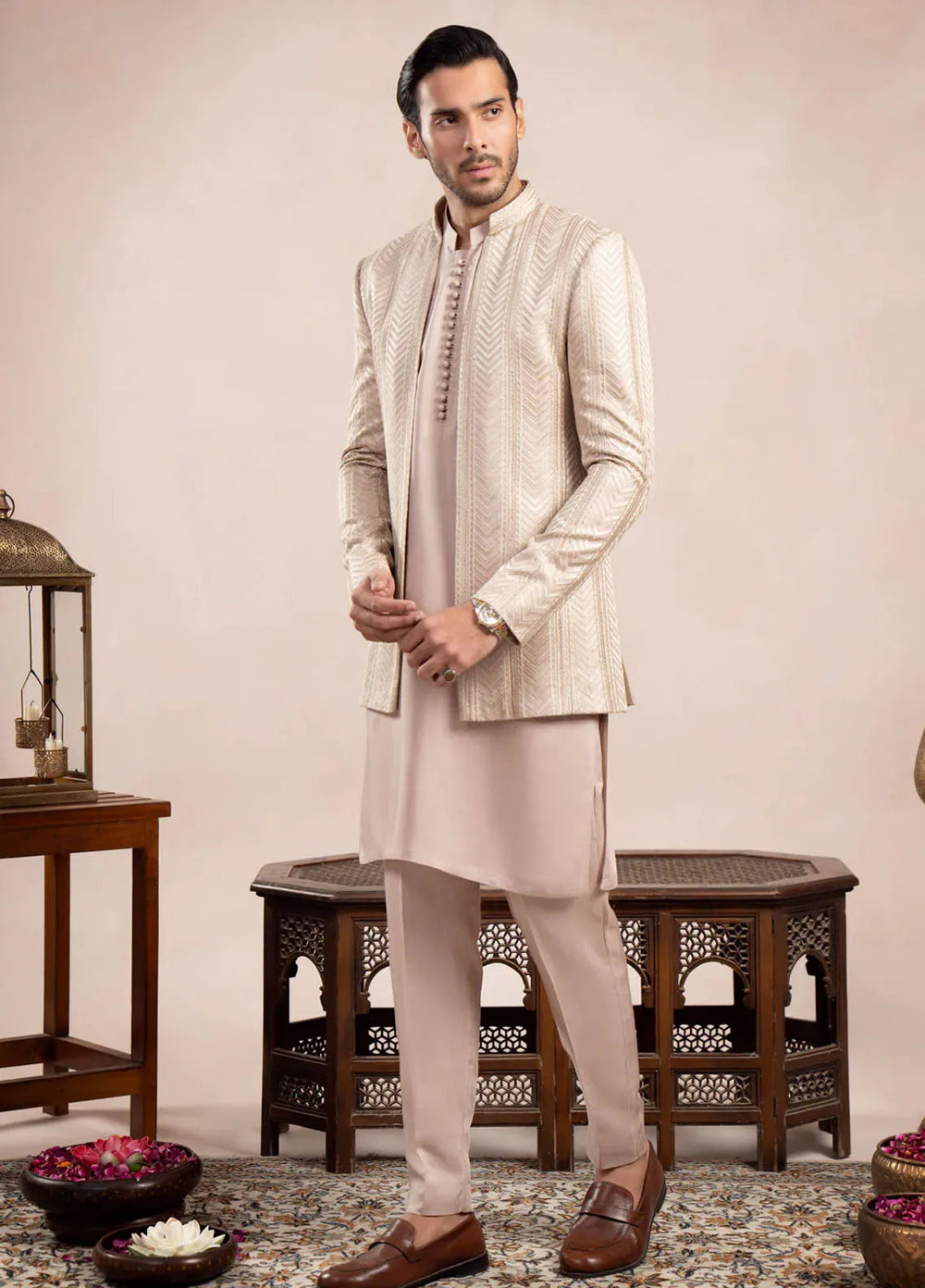 Muraqsh Pret Embroidered Raw Silk 2 Piece Bosky Kurta Trouser with Falling Prince Coat
