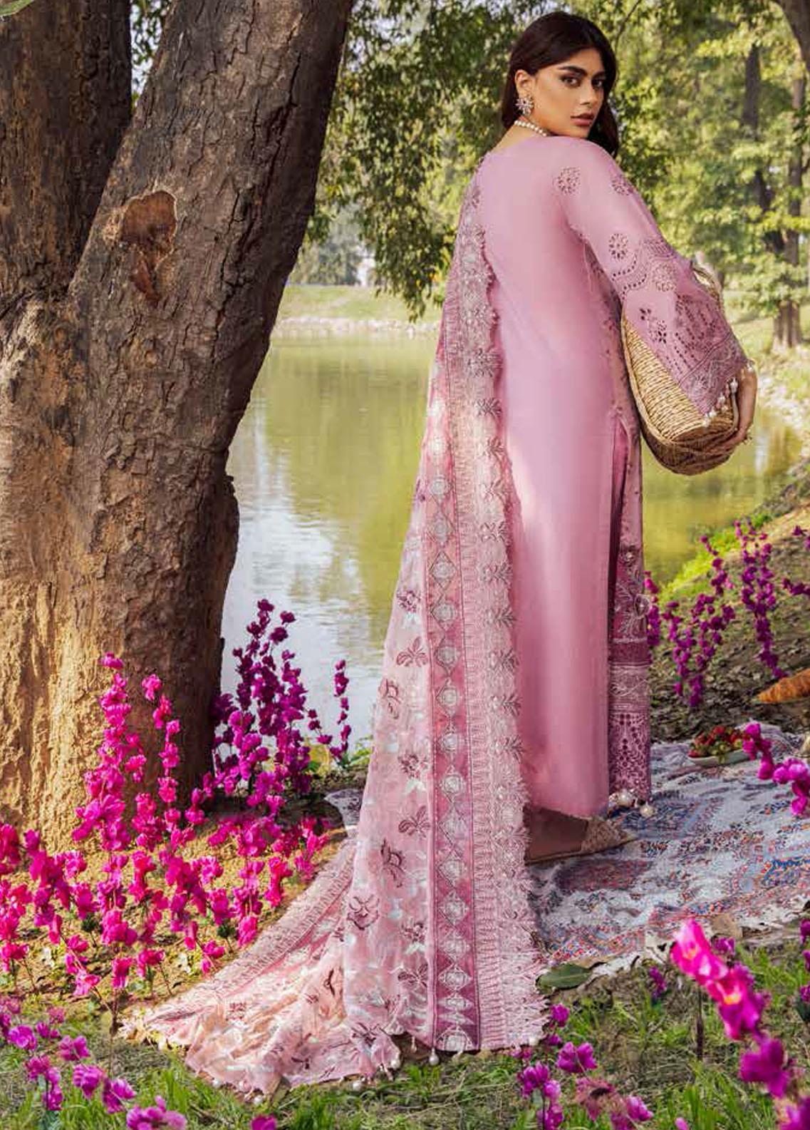 Blooming Summers By Nureh Embroidered Lawn Suits Unstitched 3 Piece NU22BS NI-32 Petal Pink - Luxury Collection