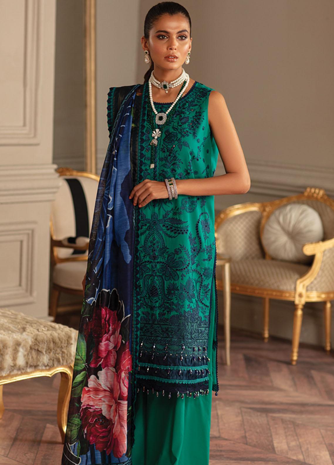 Carnation By Raaya Embroidered Lawn Suits Unstitched 3 Piece RY22C 03 Emerald Queen - Luxury Collection