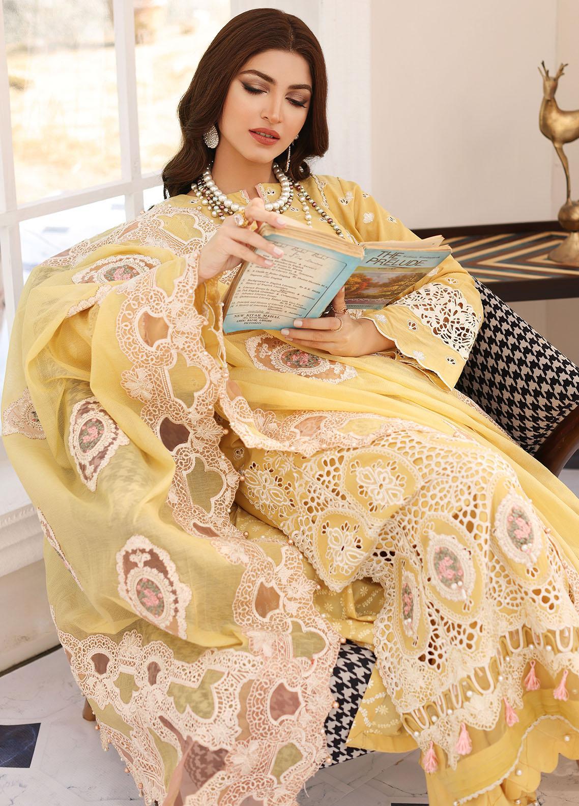 Elaf Embroidered Lawn Suits Unstitched 3 Piece EF23FC ELC-03A Daffodil - Festive Collection is available at sanaulla online store. We have complete variety of 3 Piece Embroidered Unstitched suits with us. Complete range of Elaf available and 100% Original. We deliver Worldwide, and accept COD in Pakistan.