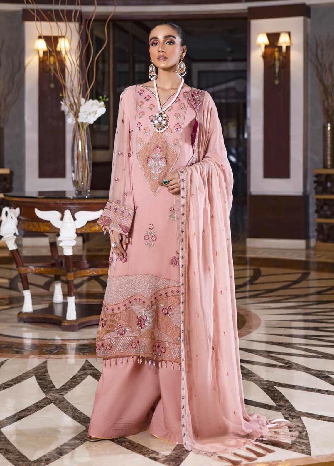 Jannan By Riaz Arts Embroidered Chiffon Suits Unstitched 3 Piece RA22JL JL-15 - Luxury Collection