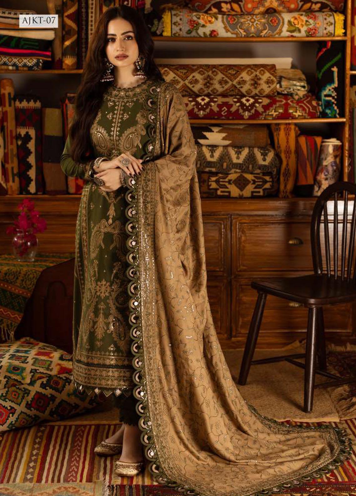 Kashmiri Taanka By Asim Jofa Embroidered Slub Suits Unstitched 3 Piece AJ23KT AJKT-07 - Winter Collection