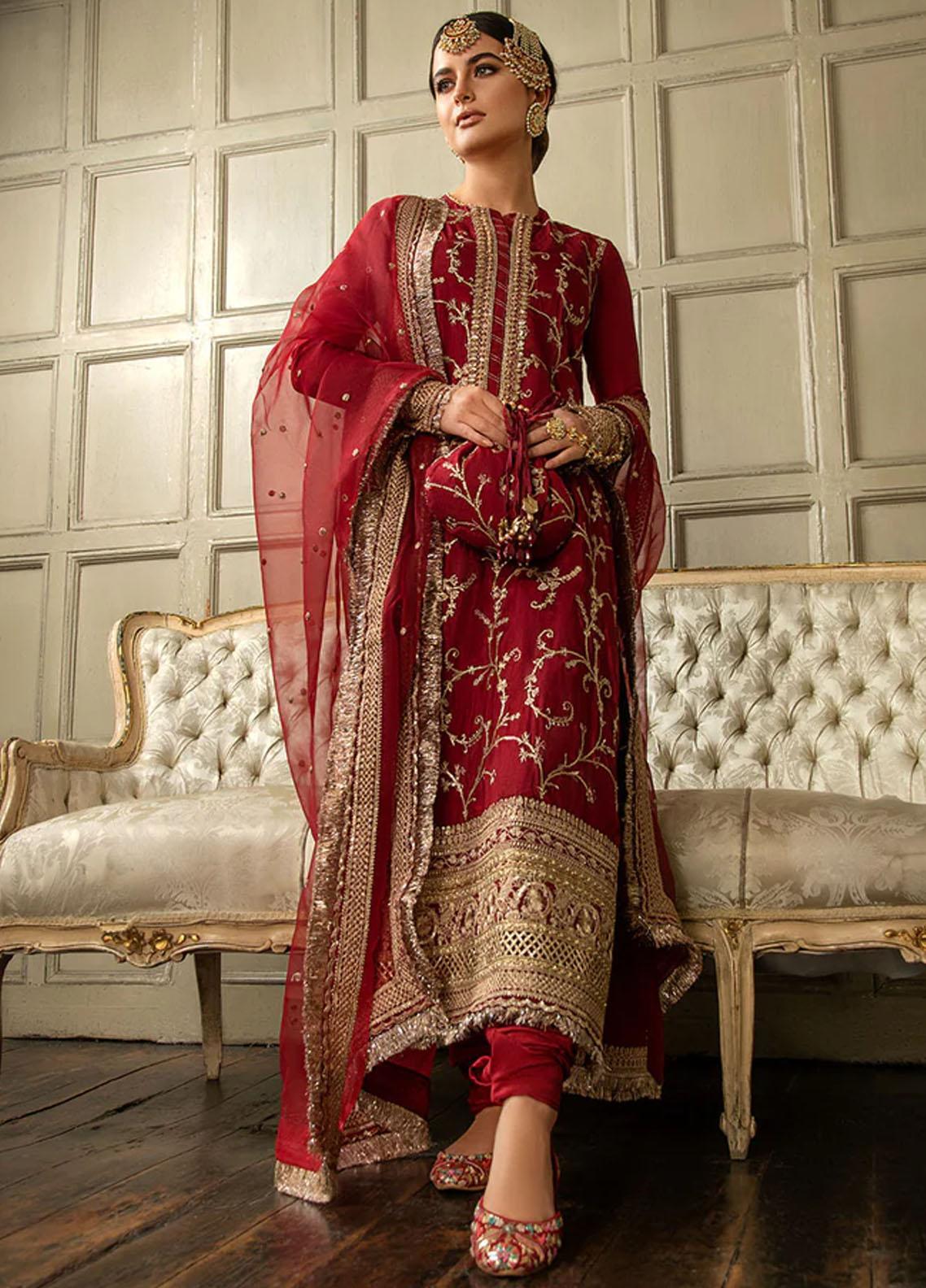 3 Piece Embroidered Raw Silk Suit