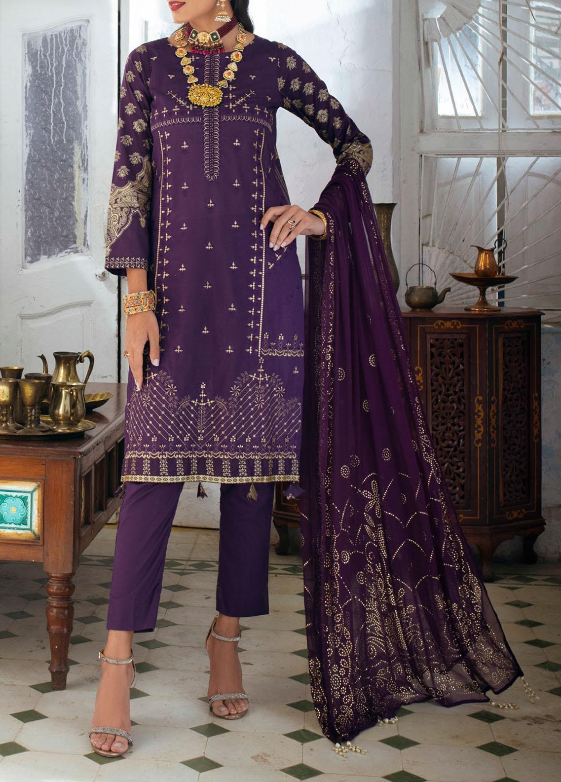 Shirt : Heavy Embroidered Shirt Front with Lawn Printed Back and Sleeves Dupatta : Mukesh Chiffon Dupatta Trouser : Dyed Cambric Trouser Color :Purple Embroidery Details: Resham and Zari Thread with Mirror Work Other Details :-