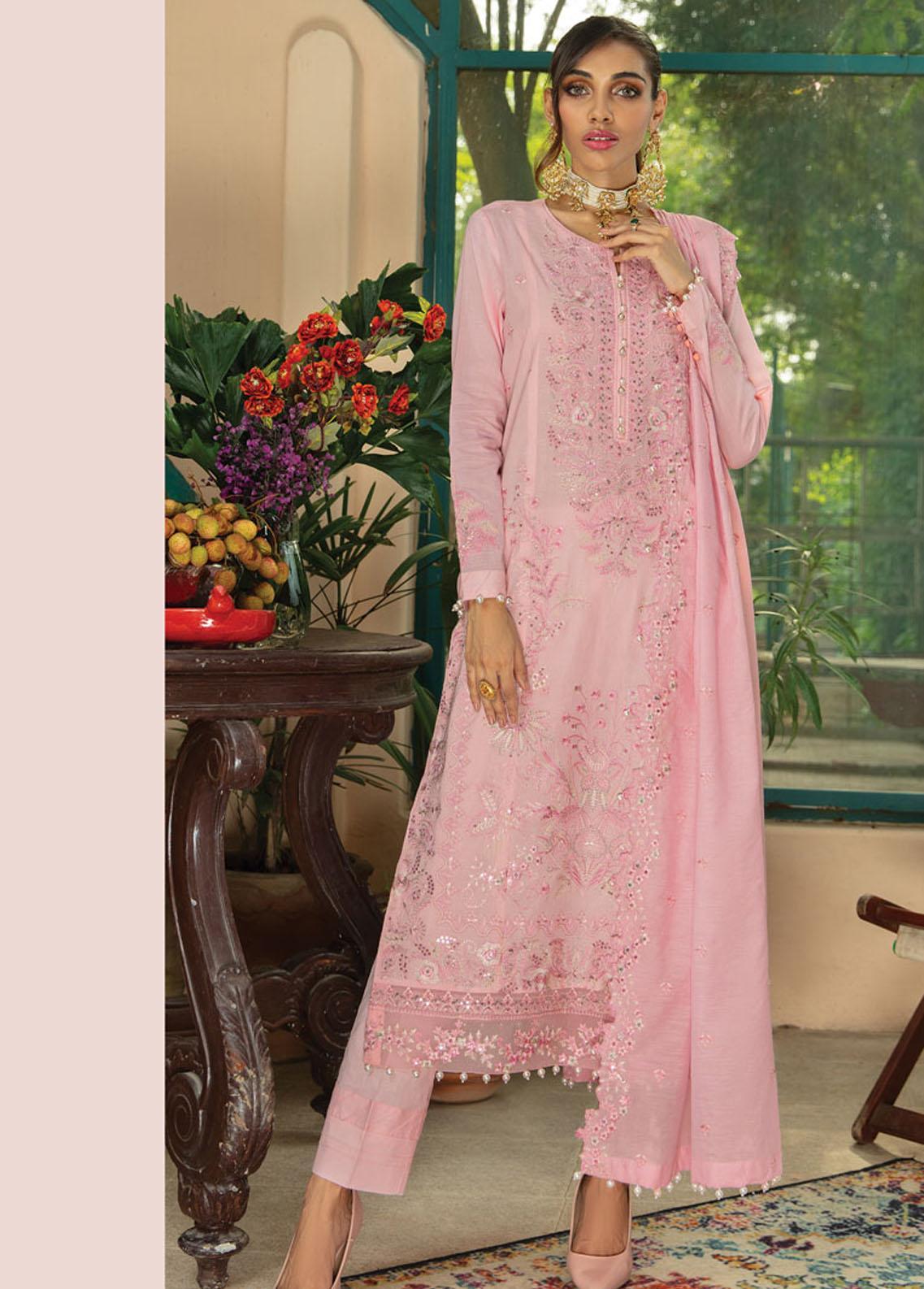 Raaya by Rang Rasiya Embroidered Lawn Suits Unstitched 3 Piece RRR22E D-4 Tea Rose - Eid Collection