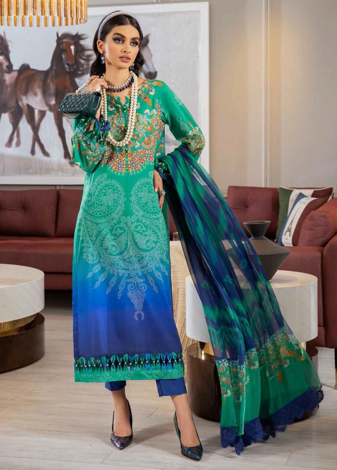 Signature Prints By Nureh Printed Lawn Suits Unstitched 3 Piece NU22SP SP-12 - Summer Collection