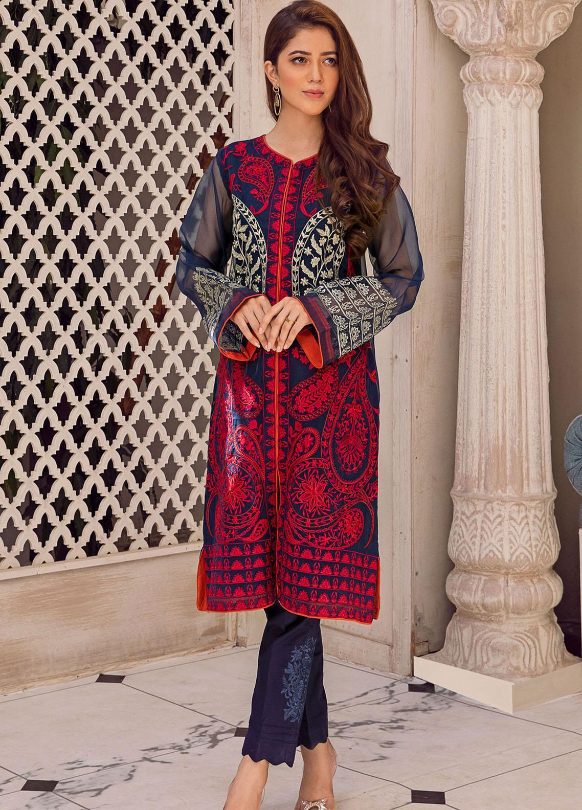 Kross Kulture Luxury Pret Embroidered Organza Shirt KX-21264 Navy