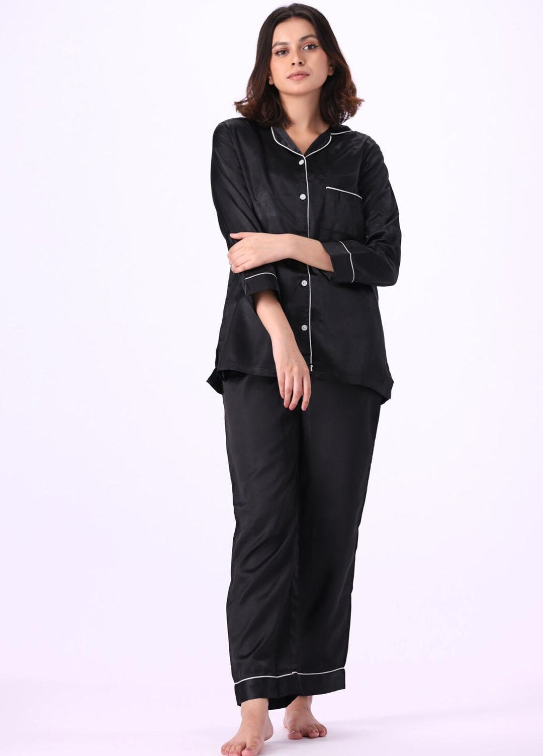 Valerie Night Wear Printed Satin Pajama Set VL-GORGEOUS-BK