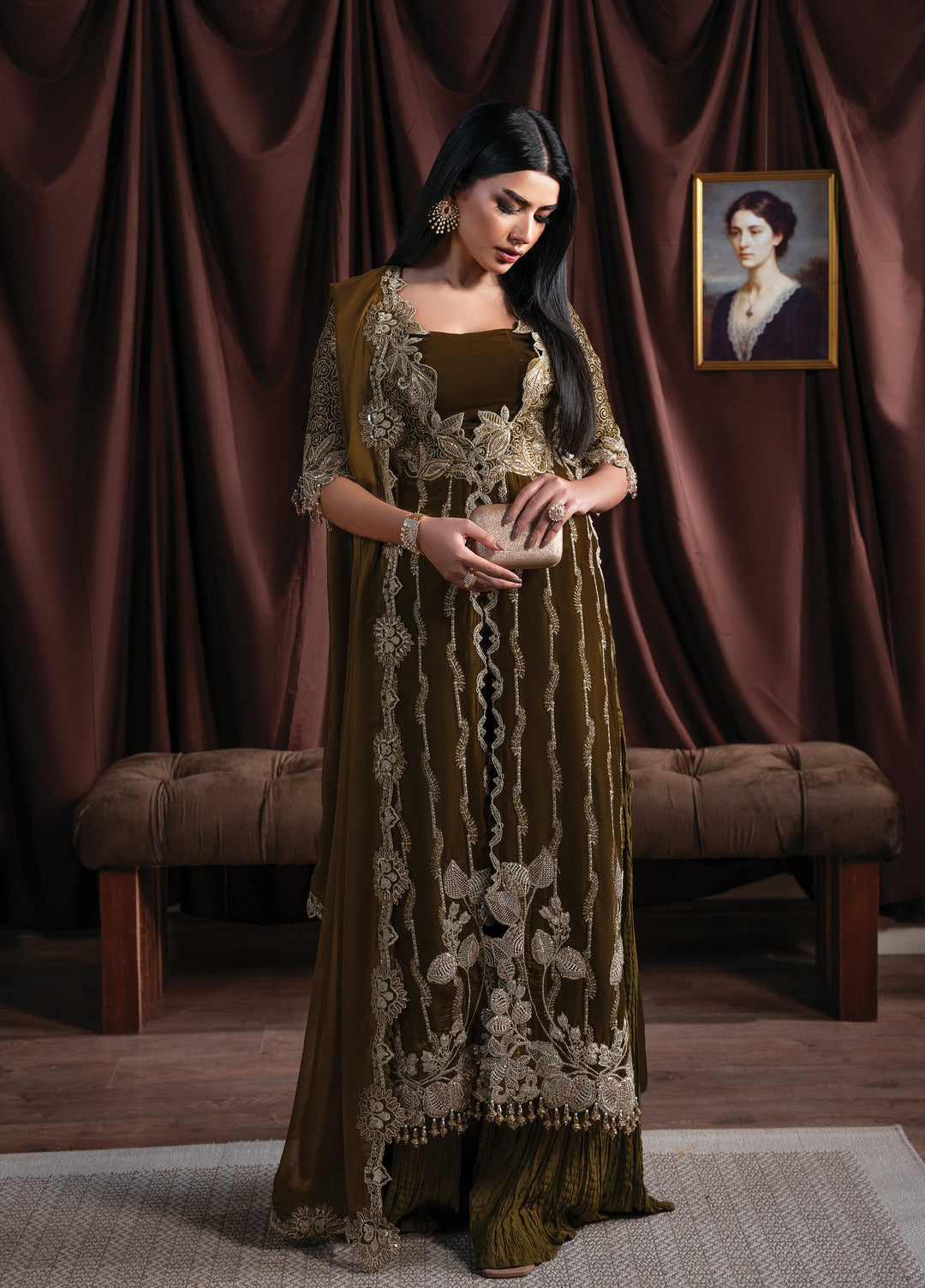 Naayas Luxury Pret Embroidered Velvet Kaftan Chocolate Moose