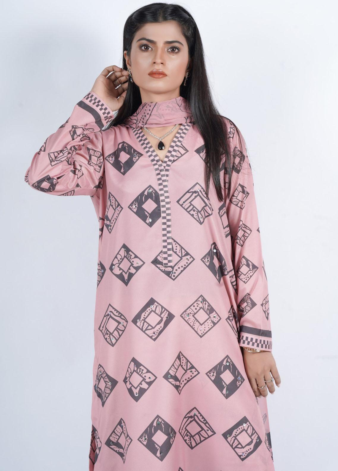 Vibgyor Fashion Printed Silk Suits Unstitched 3 Piece Marvel Tea Pink D5-C1-23U - Formal Collection