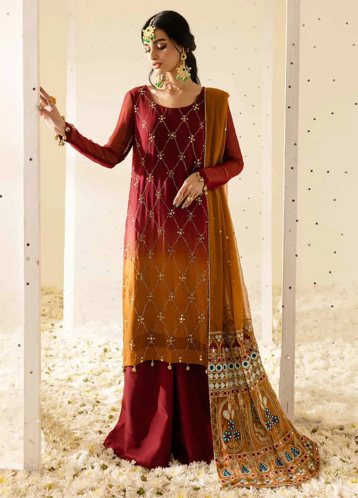 4 Piece Embroidered Unstitched Suits from Mukeshkari by Nureh Embroidered Chiffon Collection 2025
