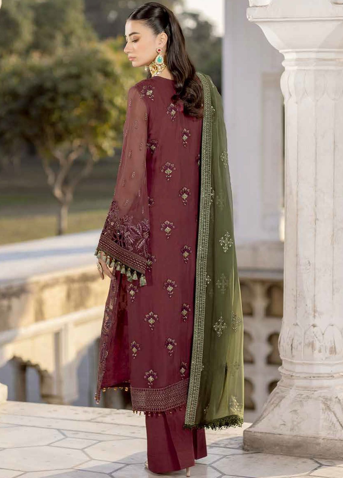Safeera by Flossie Embroidered Chiffon Suits Unstitched 3 Piece FL24SF S-1305 Cherryade - Luxury Collection