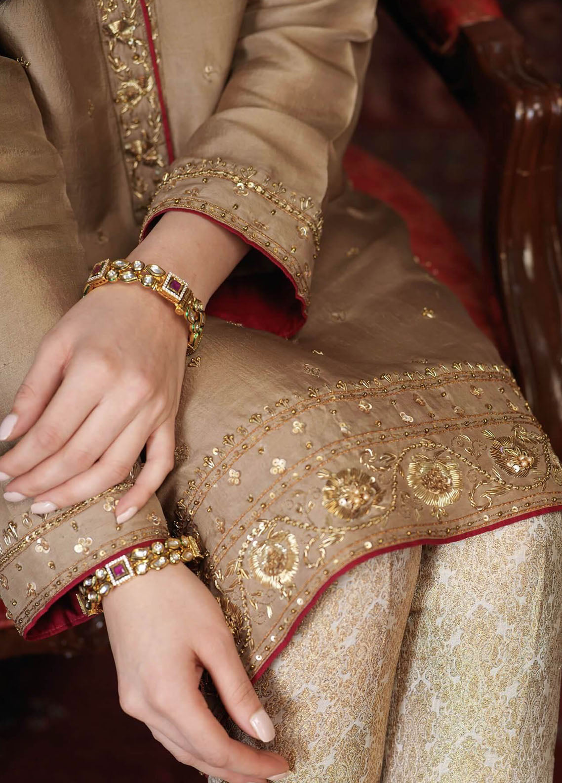 Embroidered Pret Beige 3 Piece Suit