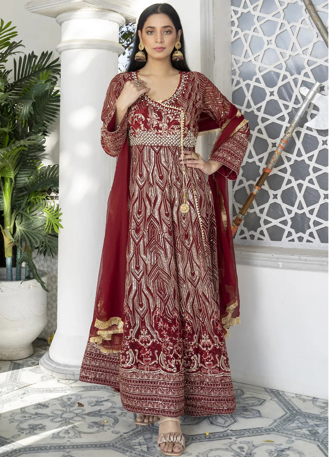 Mona Embroidery Pret Embroidered Chiffon 3 Piece Suit Cedar-Mehroon