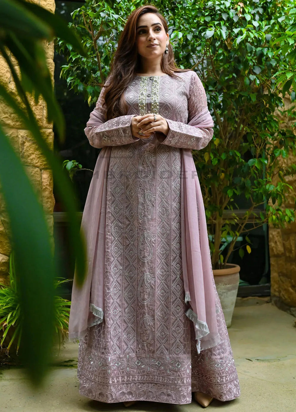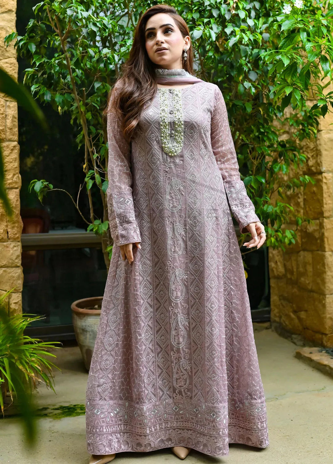 Mona Embroidery Pret Embroidered Chiffon 3 Piece Suit Dusty Affair-Lilac