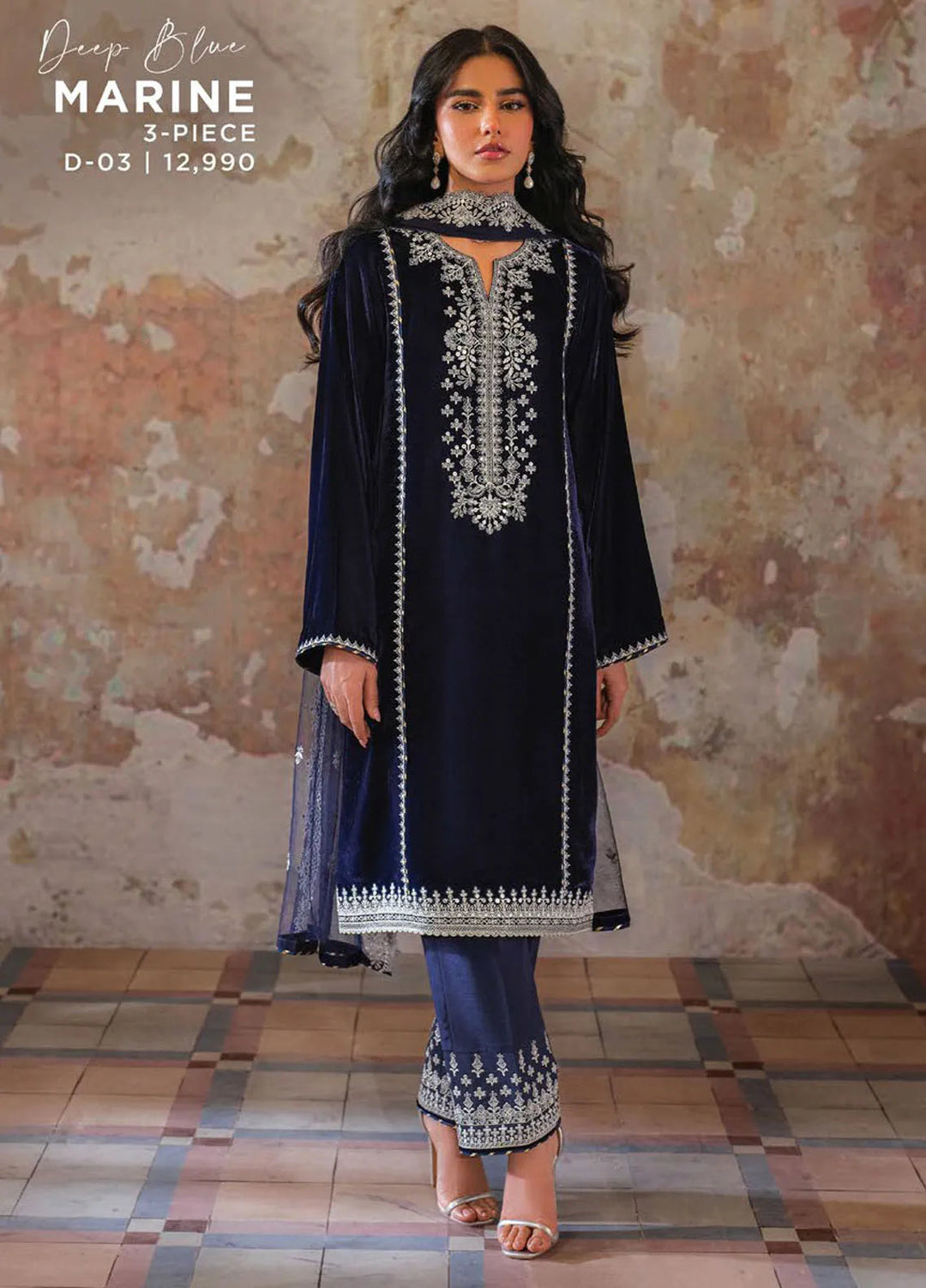 Velmor by Seran Embroidered Velvet Suit Unstitched 3 Piece SRN24VF Marine - Formal Collection