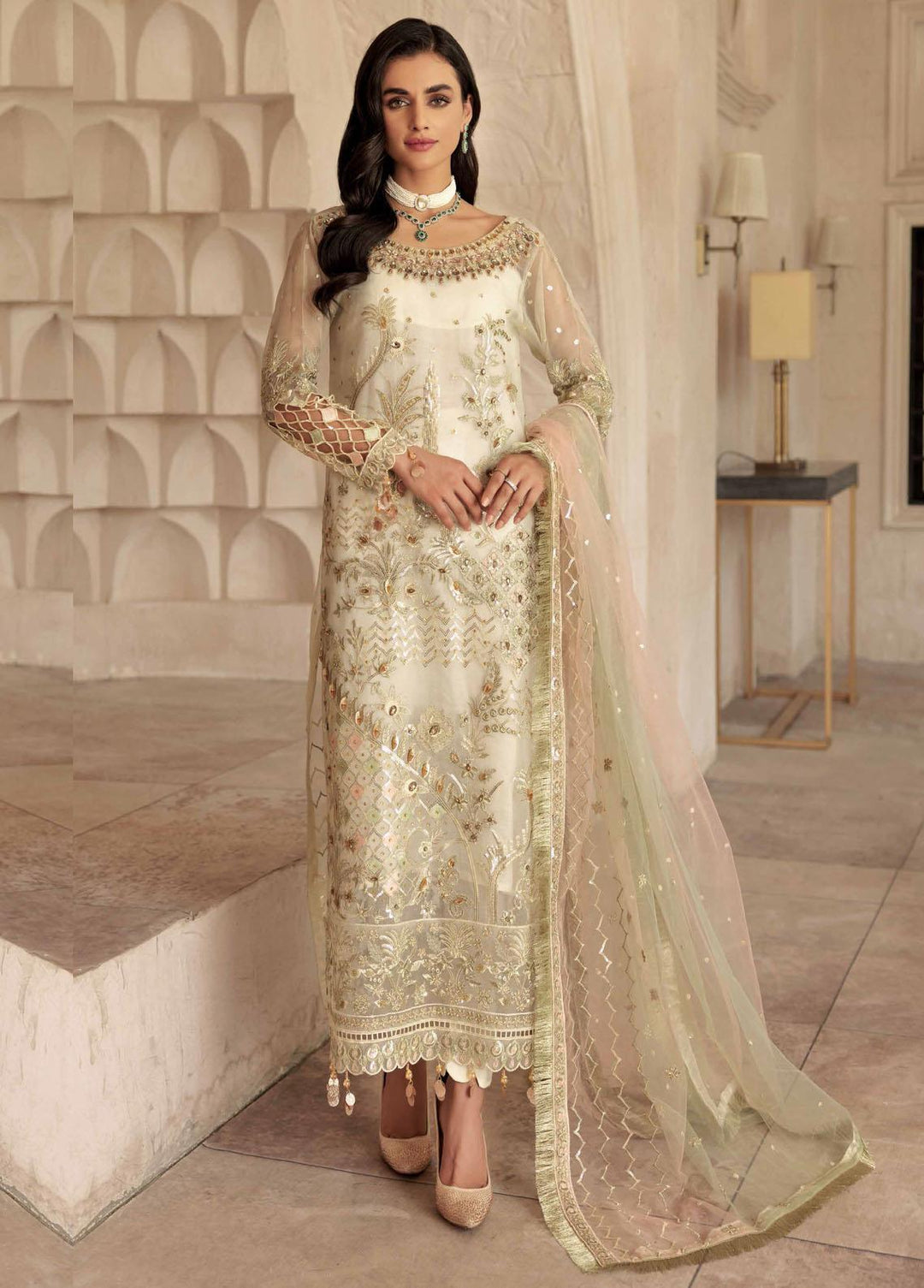 Aqs-e-Dast By Alizeh Fashion Embroidered Chiffon Suits Unstitched 3 Piece AFB22-F11 03 Jahanara - Festive Collection