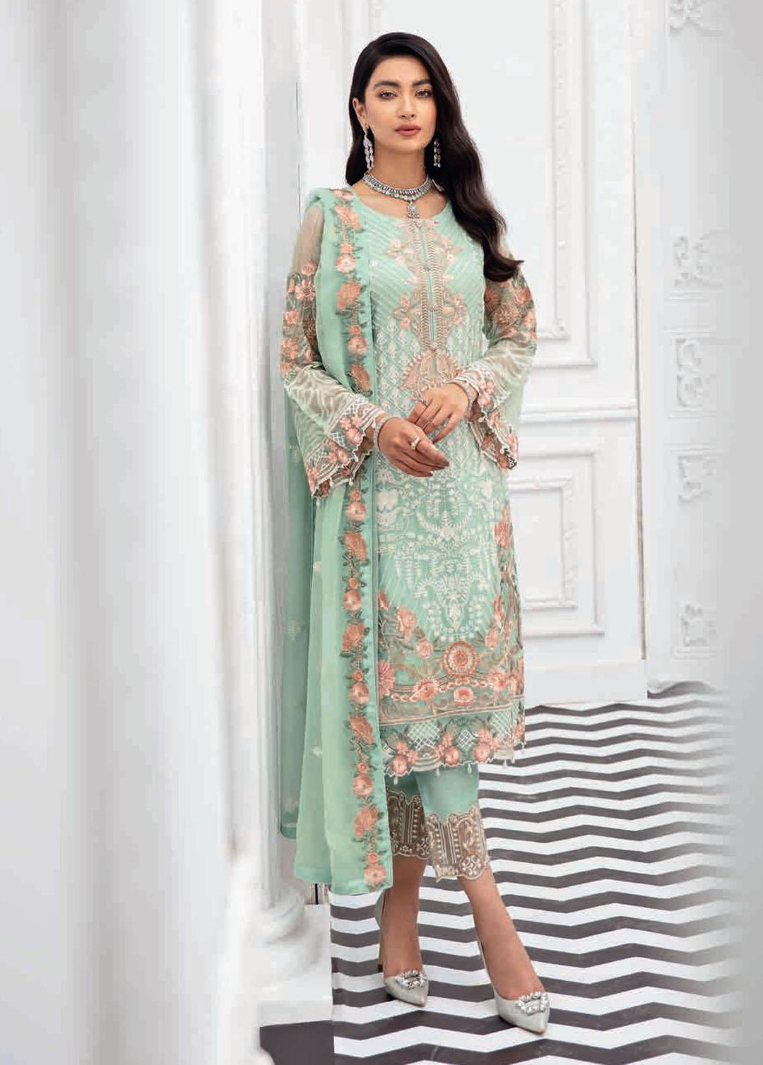 Rangoon by Ramsha Embroidered Chiffon Suits Unstitched 3 Piece RSH22-R8 D-804 - Luxury Collection