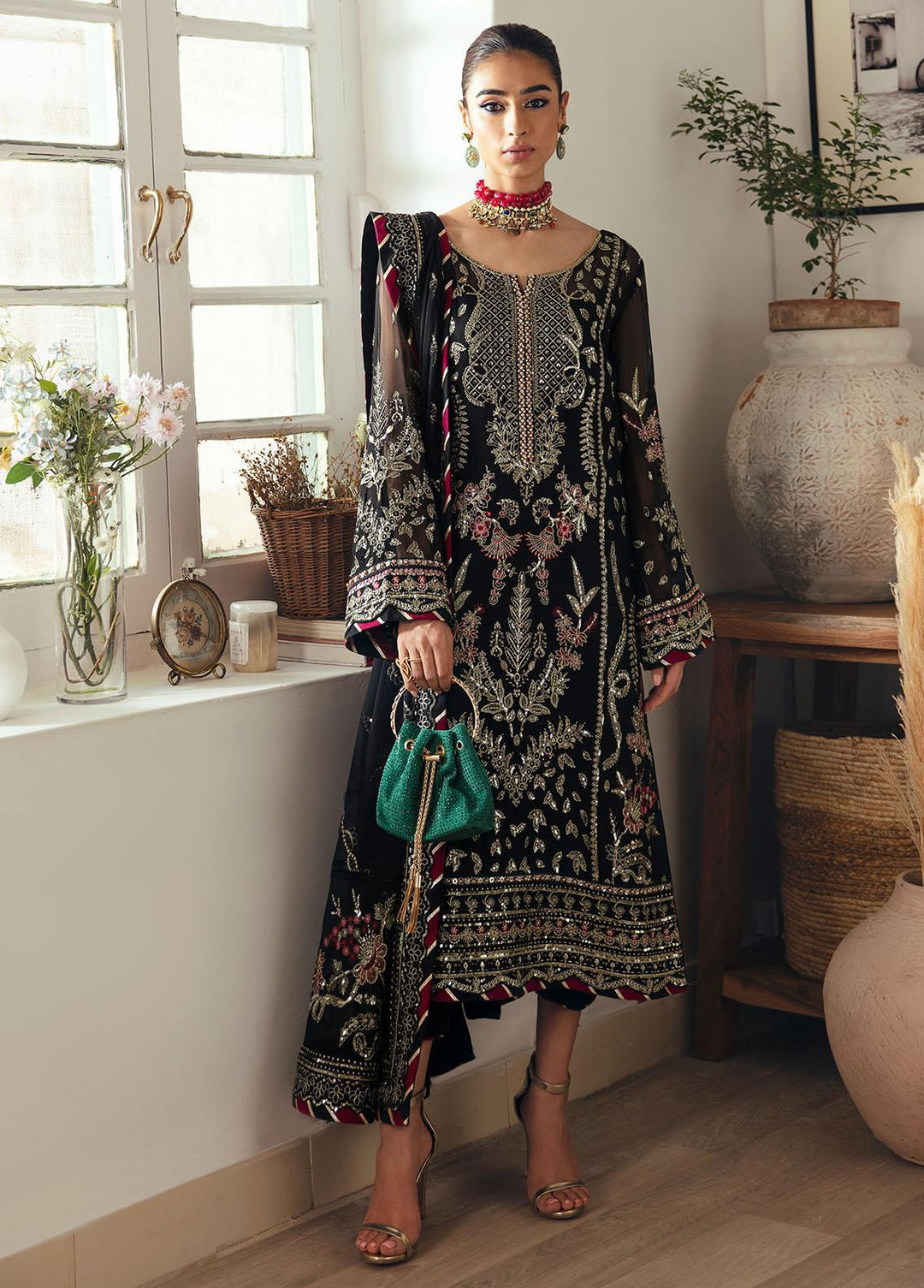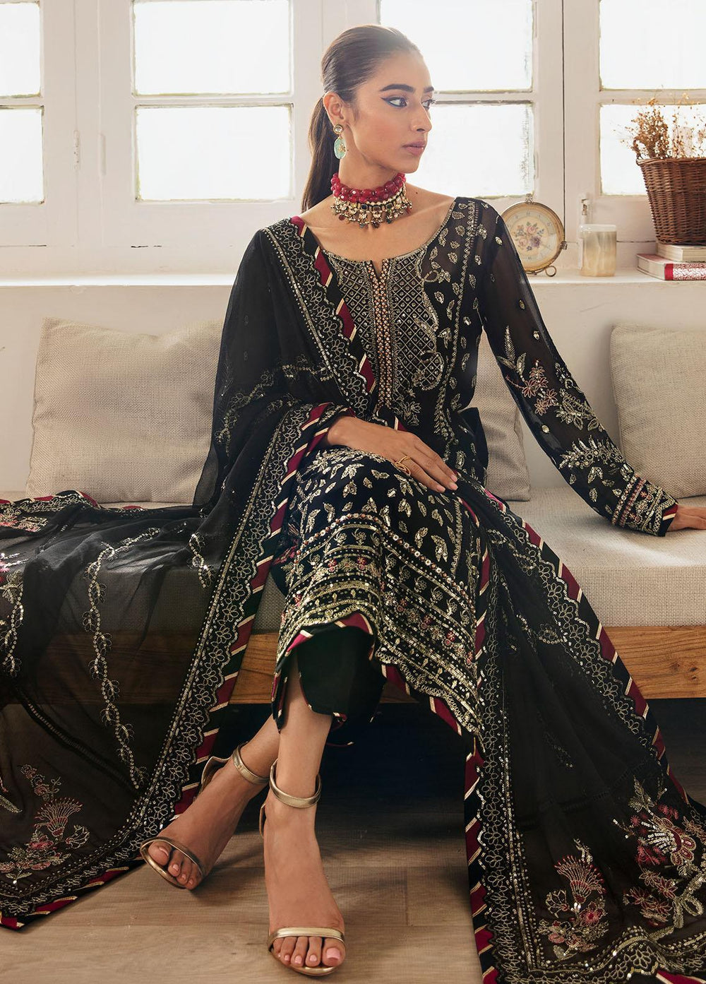 Gulaal Embroidered Chiffon Suits Unstitched 4 Piece GL23ELC GL-EC-23V1-06 NOIR - Luxury Collection