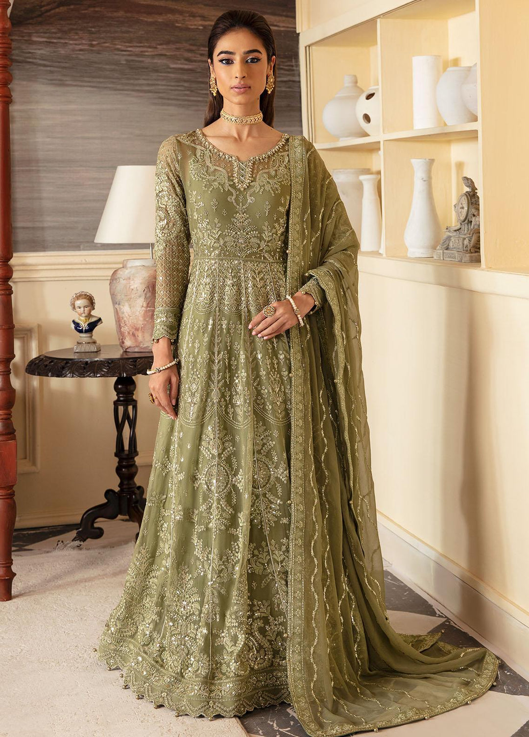Khawab Deeda By Sahane Embroidered Chiffon Suits Unstitched 4 Piece SNE23KD KD-1104 Sage - Formal Collection