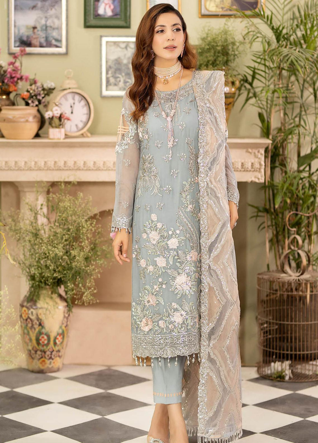 Sylvia By Akbar Aslam Embroidered Net Suits Unstitched 4 Piece AA23S 1451 Silveen - Wedding Collection