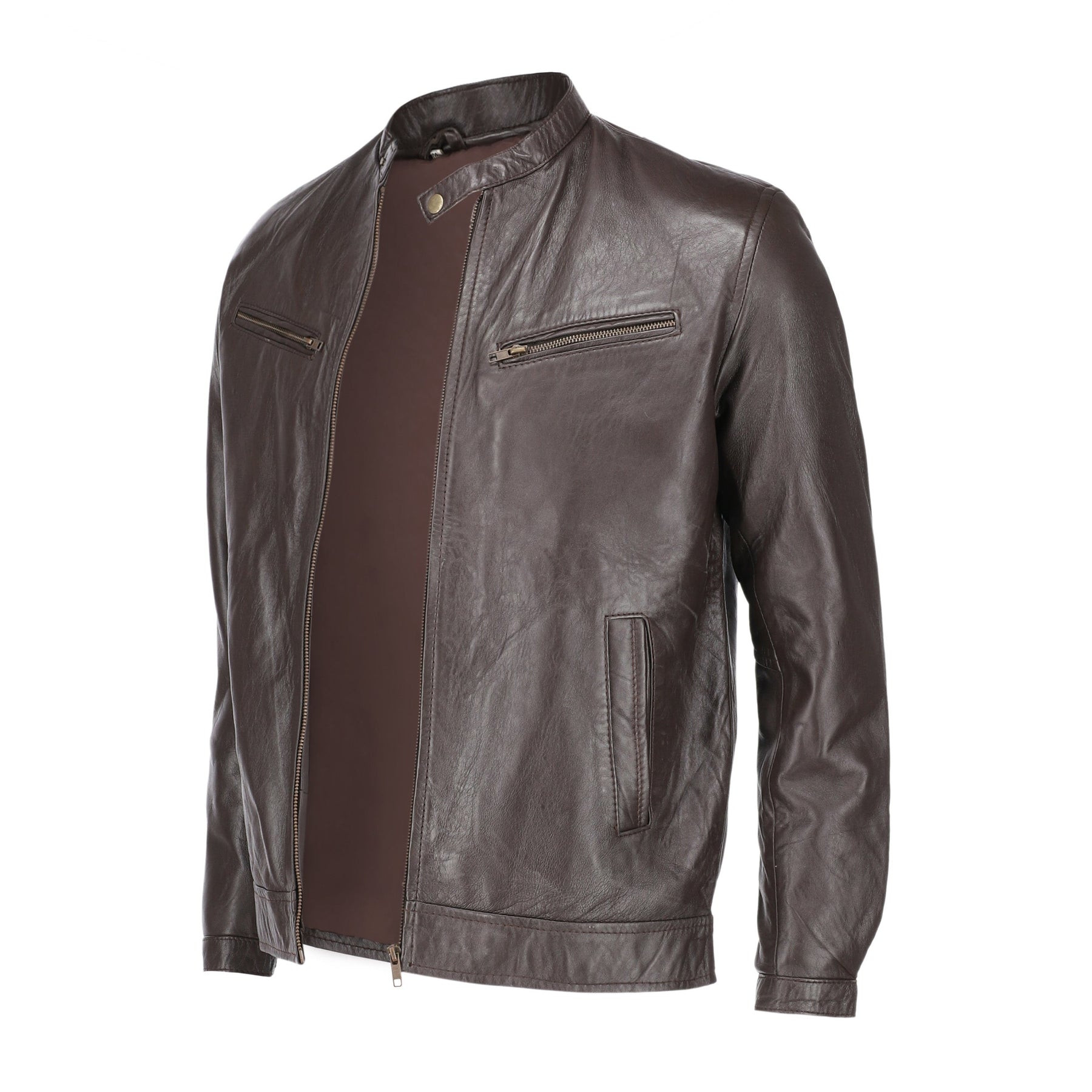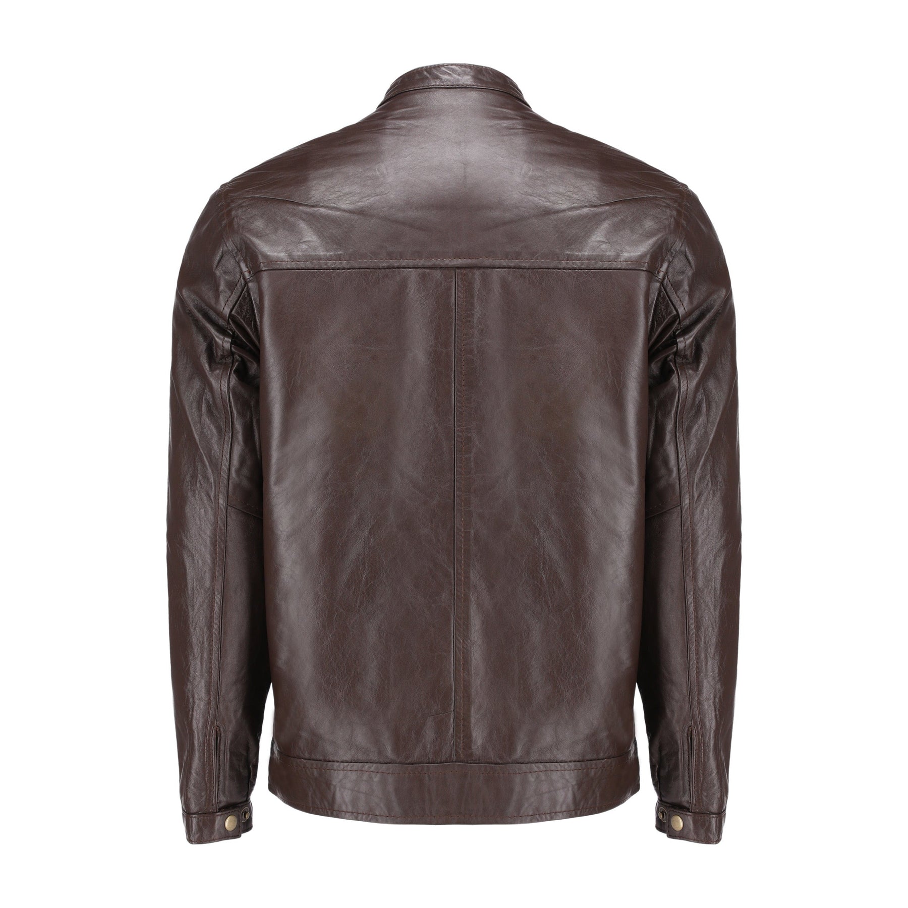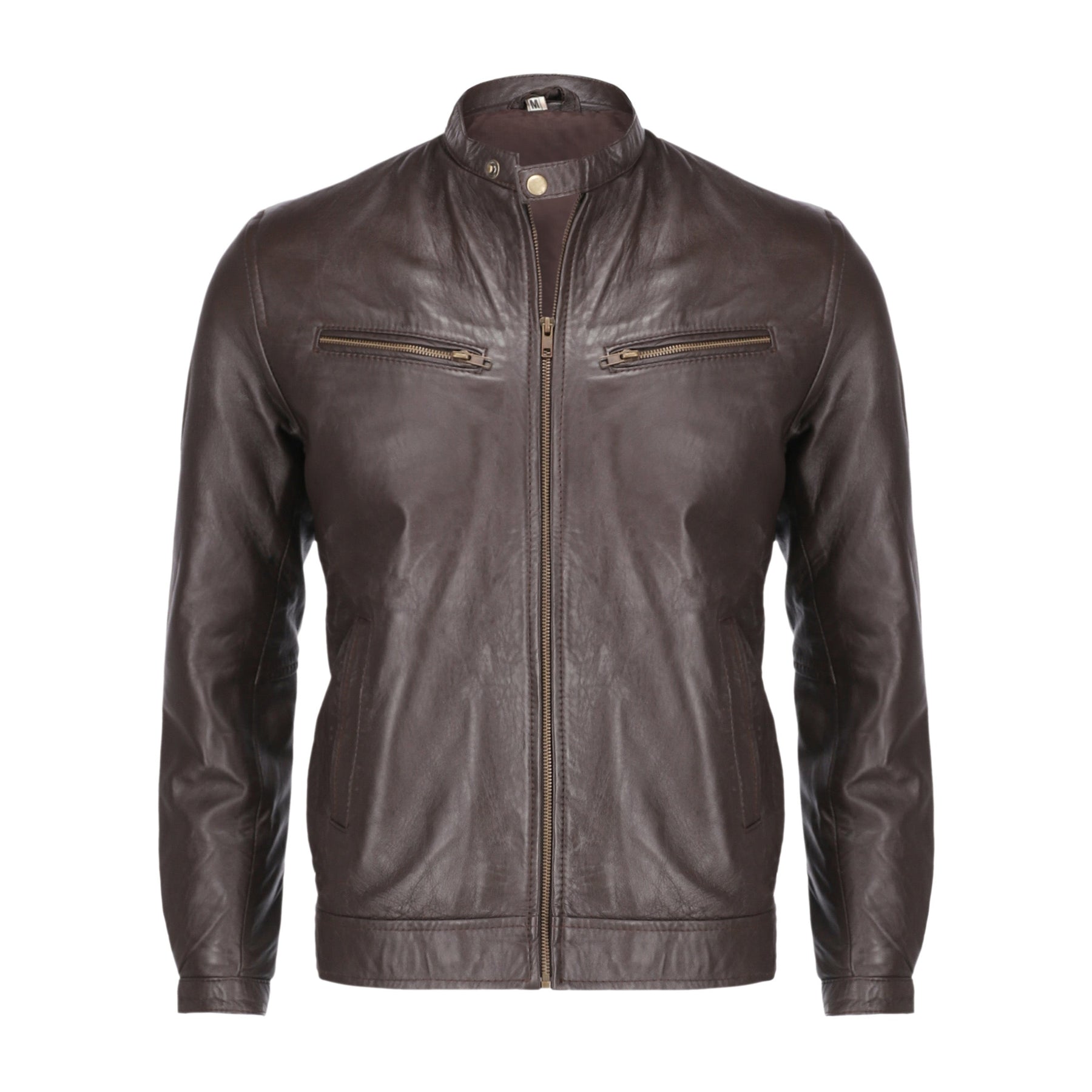 This Brown Mens Pure Sheep Leather Jacket is an ultimate trendsetter. It comes with a simple and classy design and features, front zip fastener, front zip pockets,snap button collar, and a modern fit.
