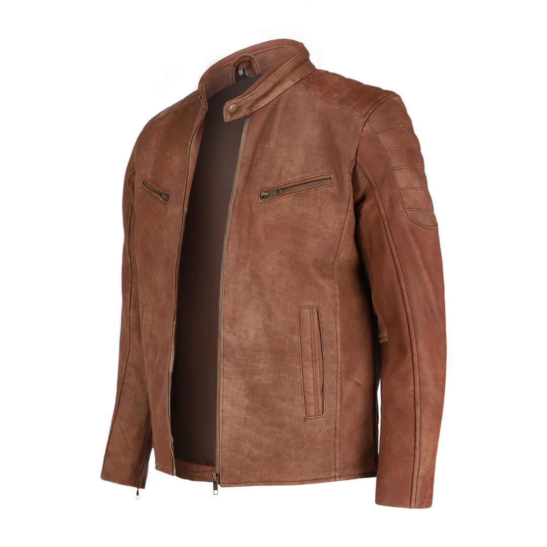 Mens Grey Wax Lambskin Biker Style Leather Jacket