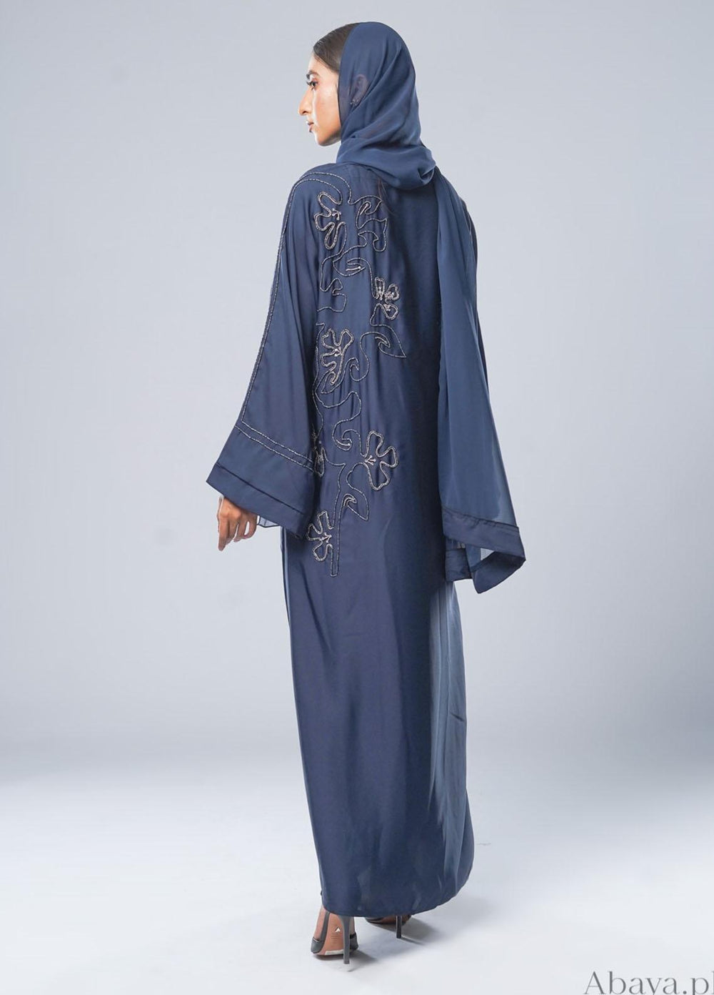 - What You Get: Abaya with a matching sapphire blue chiffon hijab