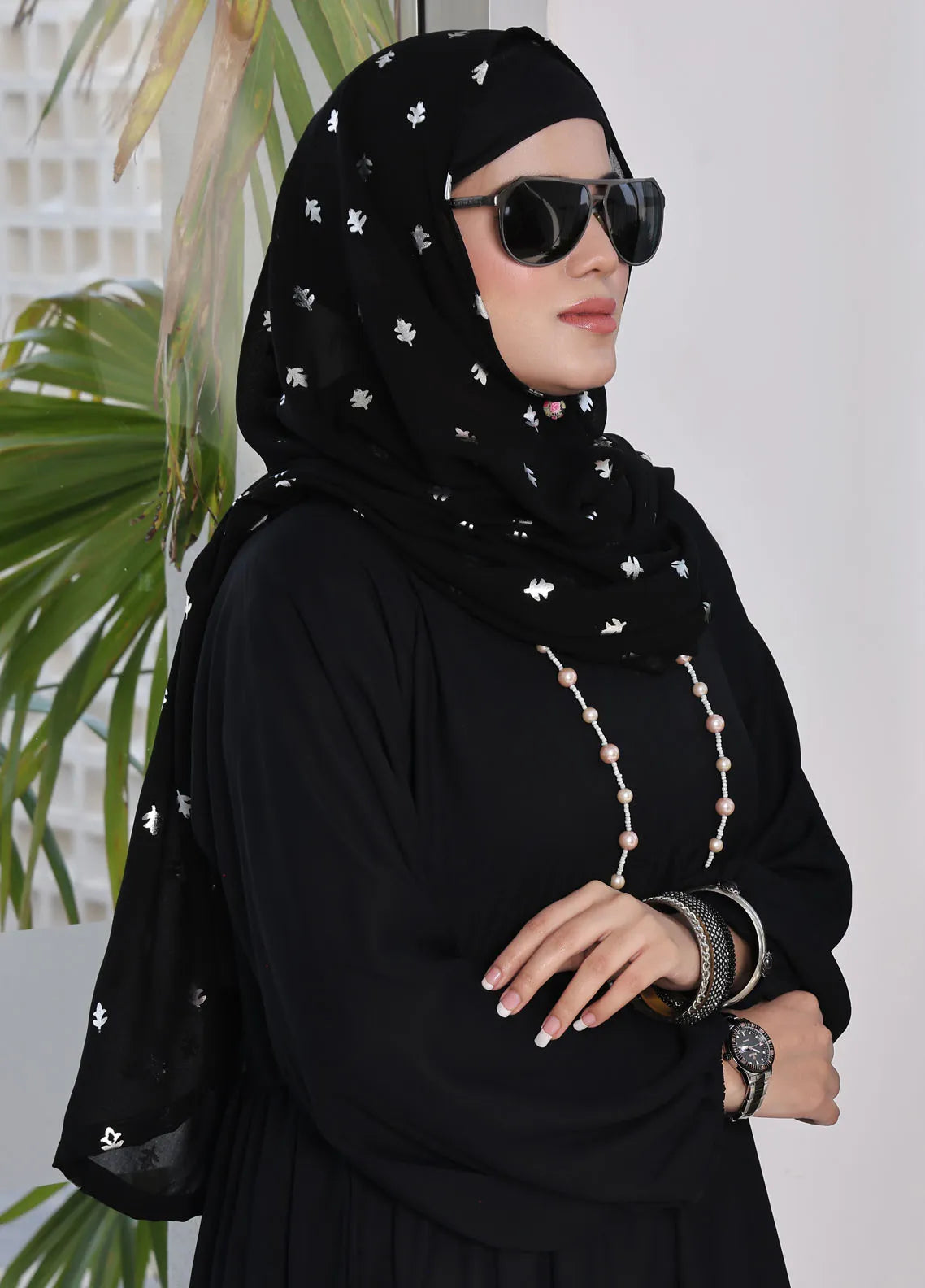 Our beautiful flaired maxi abaya is best for all day everyday wear which is soft and breathable premium fabric with elastic sleeves, which is best to carry and comes along with Digital Printed Chiffon Sheila