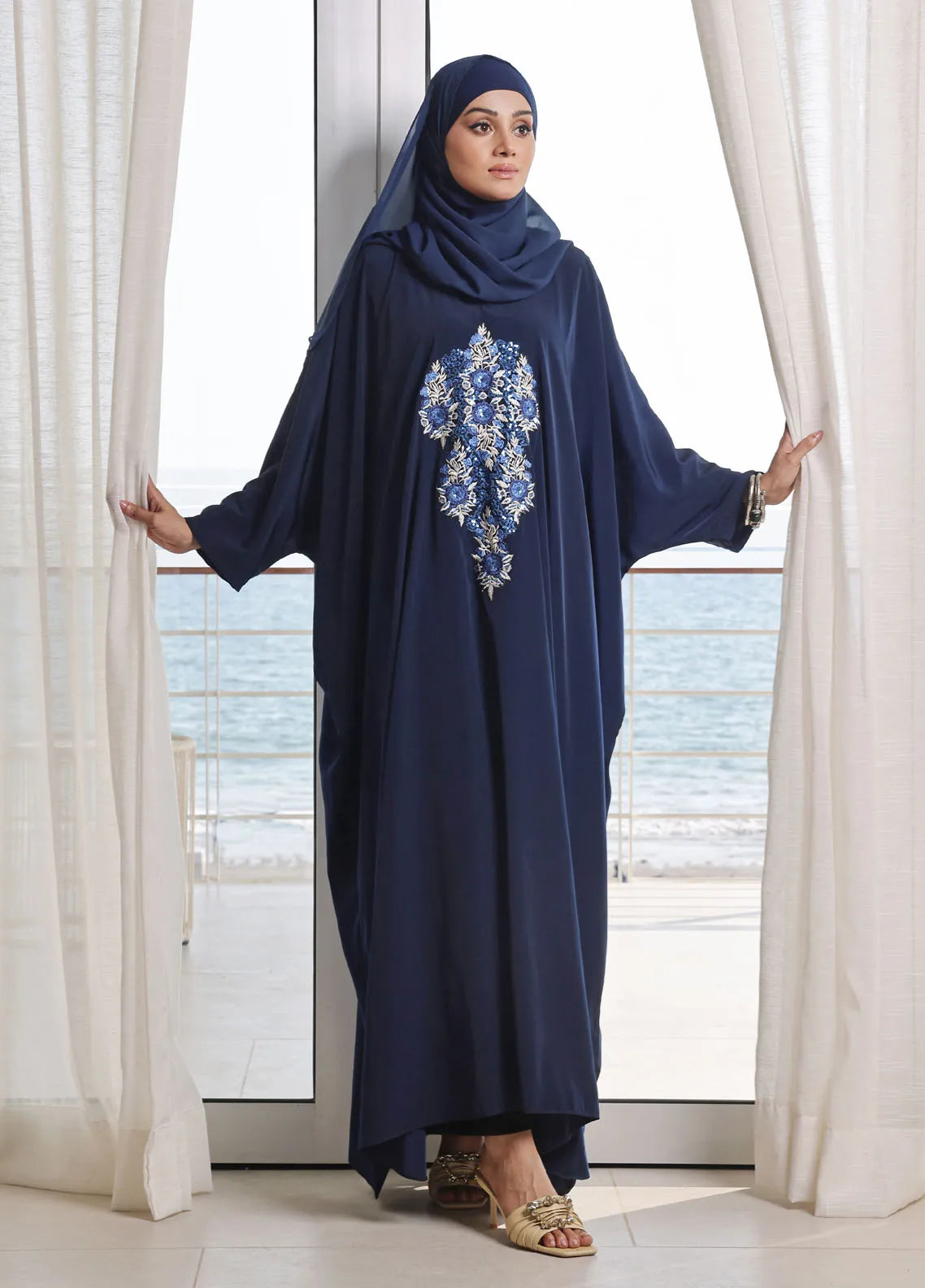 Our beautiful maxi style abaya is best for all day everyday wear which is soft and breathable premium Dubai fabric with embroidery bunch on front which is sober and elegant design which is best to carry and comes along with Chiffon Sheila
