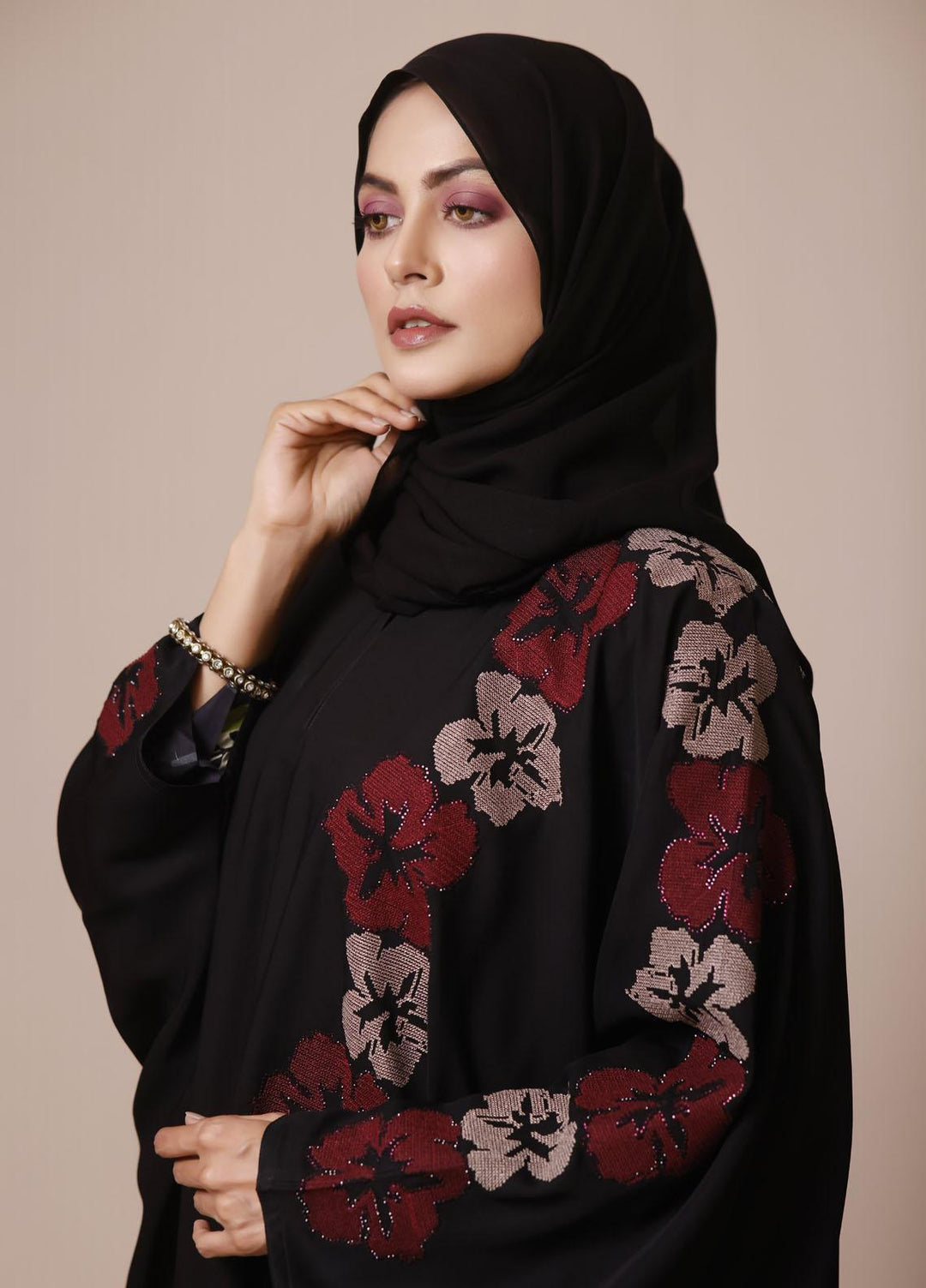 Abaya pk Casual Nida Stitched Abaya ABA22C Black Butterfly Pintux