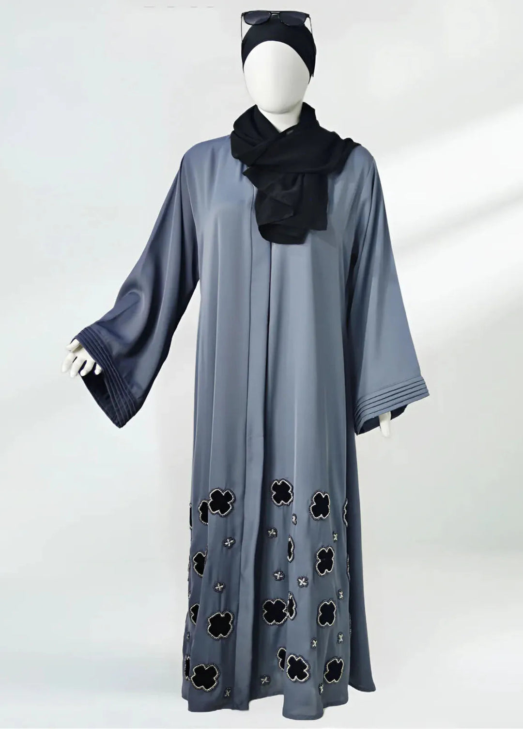 Clarity Glam Pret Embroidered Abaya Ash Valvet