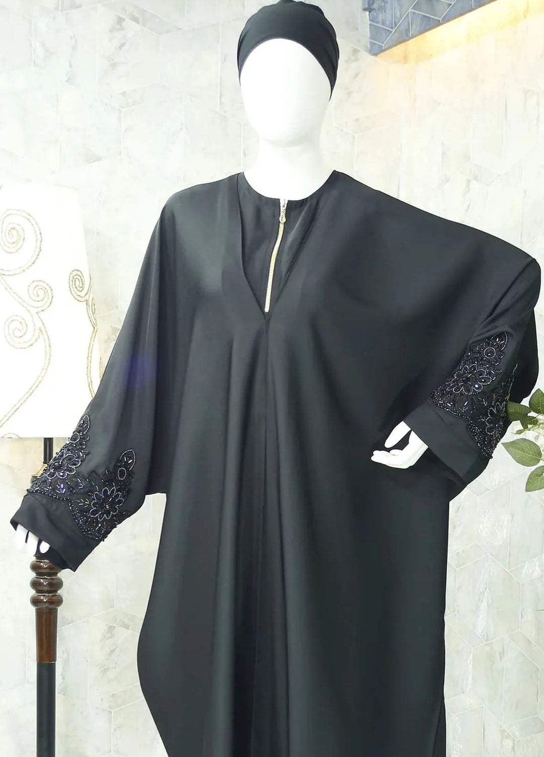 La Khilaba Pret Embellished Nida Fabric Abaya Black Sleeves