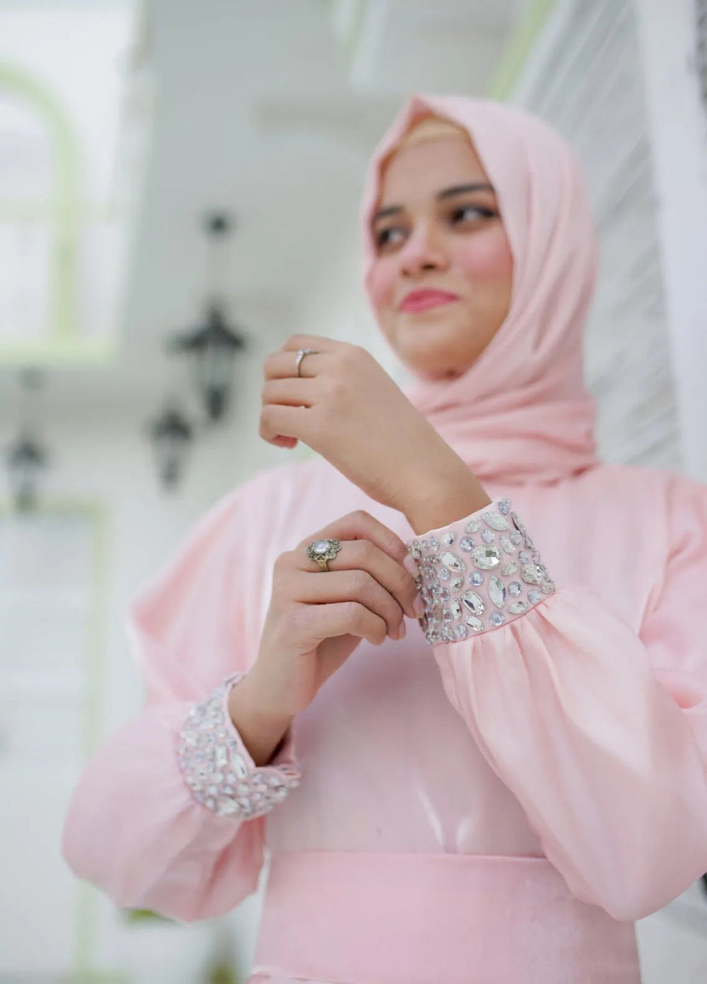 La Khilaba Pret Plain Nida Fabric Abaya Pink Flared