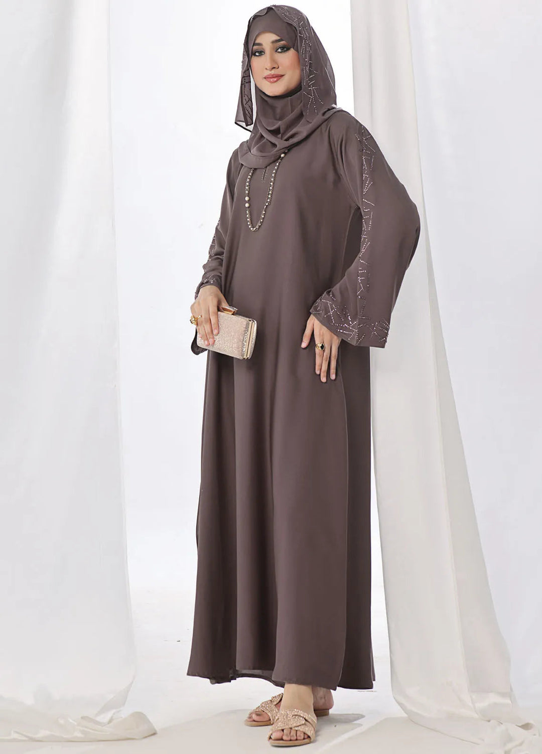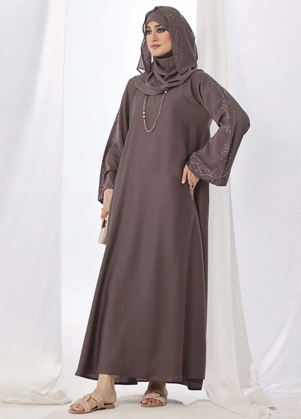 TGM Pret Stone Work Nidha Abaya Brown Leaf
